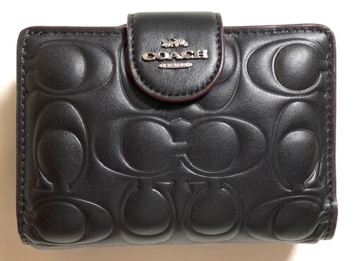 特価! 可愛い♪ COACH コーチ シグネチャー 型押し レザー 二つ折り財布 ミニ財布 CM241 ブラック 新品本物