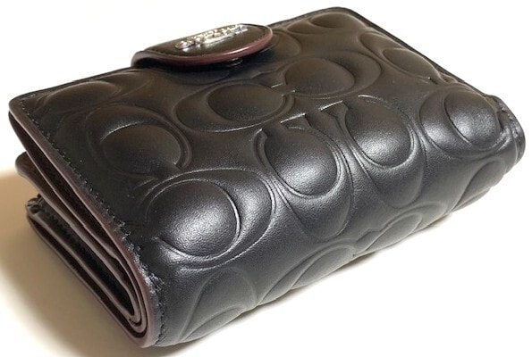 ソフトなナッパレザーにシグネチャー柄が型押しされた、コーチらしいデザインのお財布です。