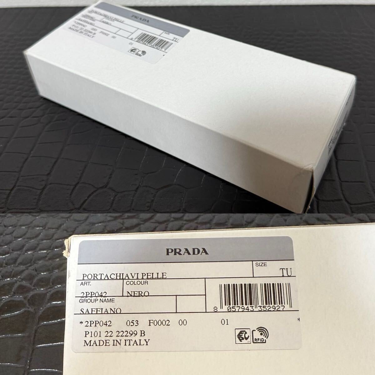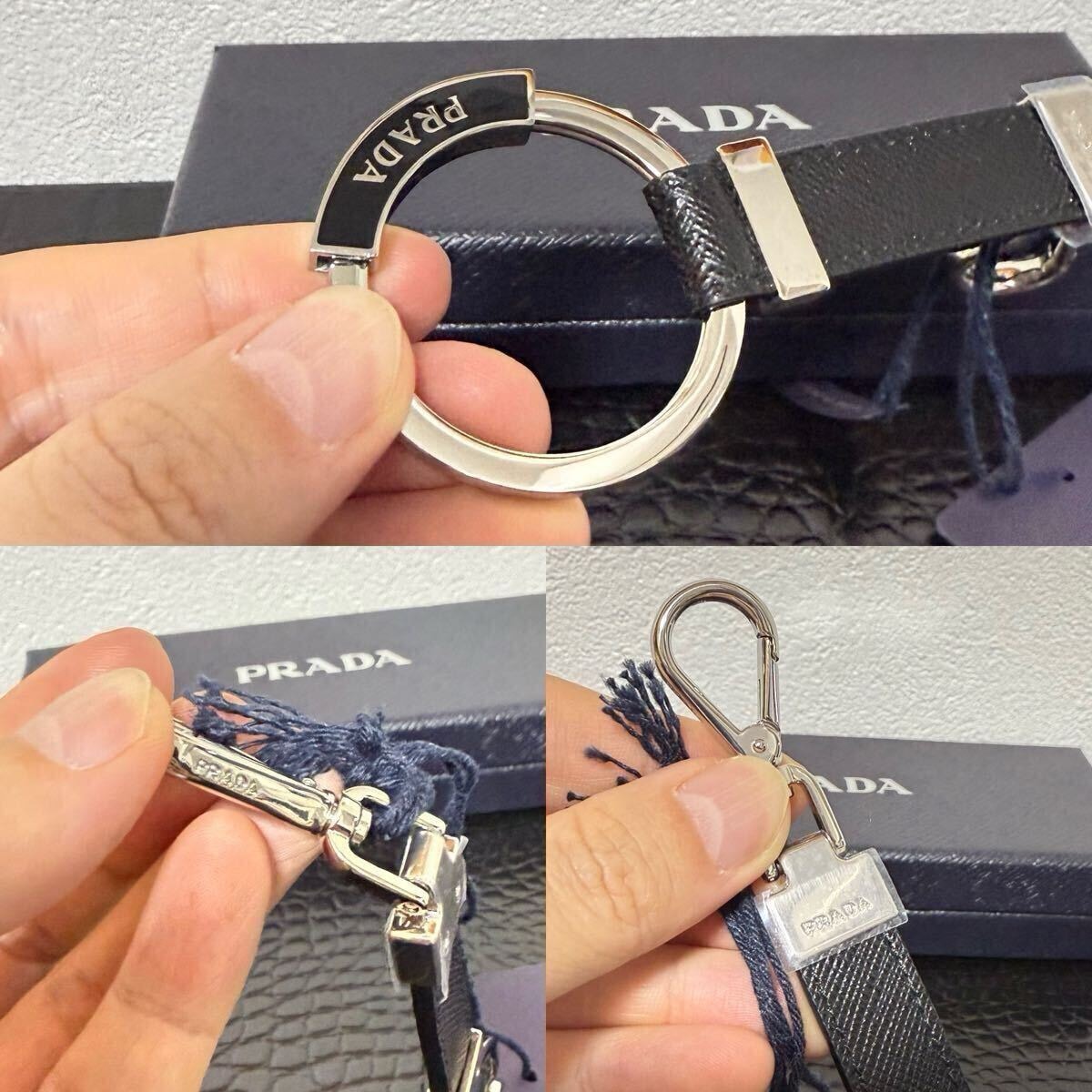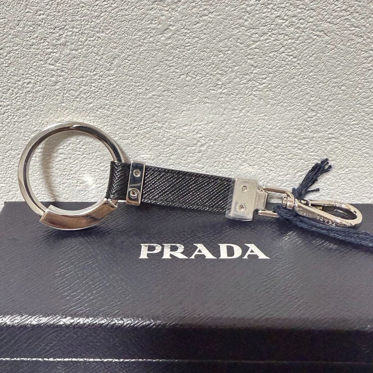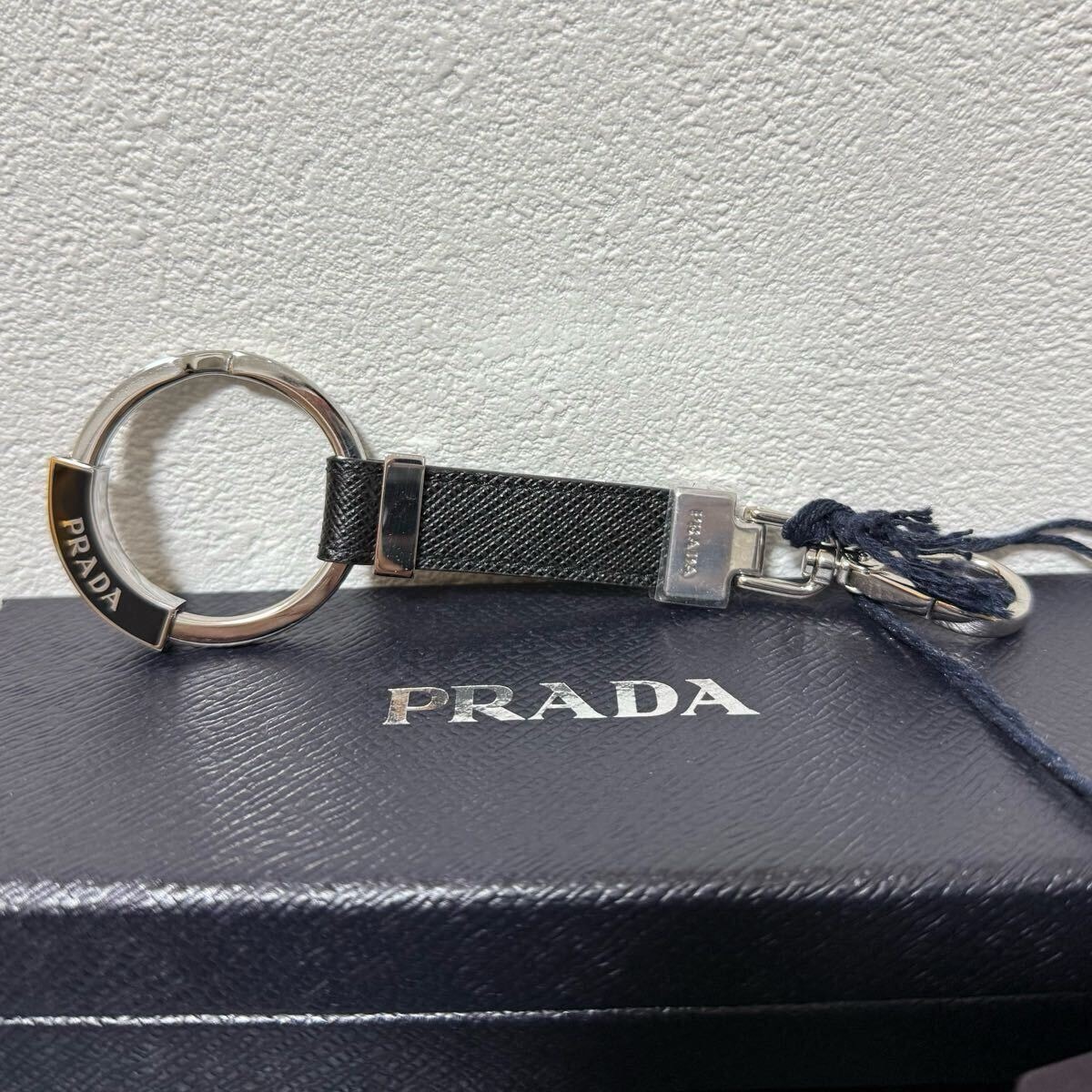 PRADA プラダ 未使用 キーリング キーホルダー 2PP042 ブラック 黒色 レザー シルバー