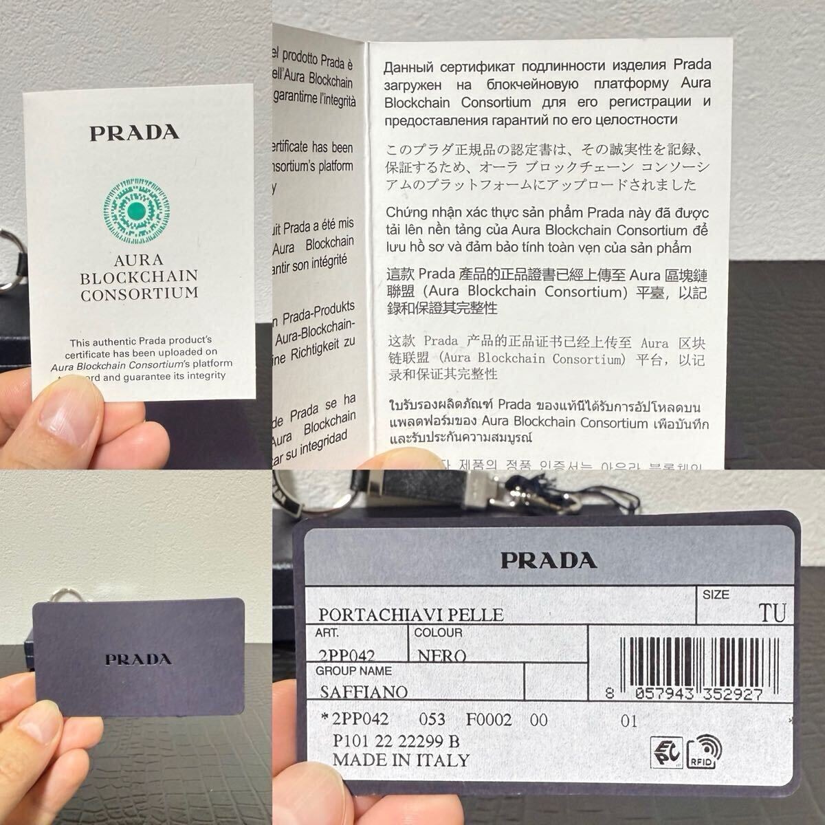 プラダで人気のサフィアーノレザーにシルバー色のキーリング組み合わせたお洒落なキーホルダー未使用品です。