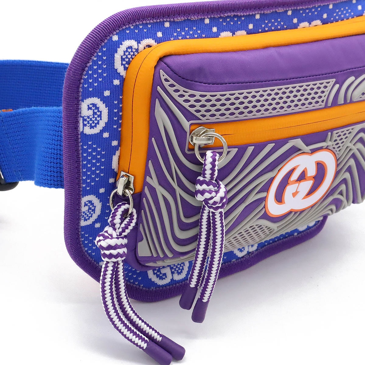 # GUCCI グッチ GG ビッグロゴ ベルトバッグ ボディバッグ ウエストバッグ ナイロン ジャージー ラバー パープル 紫 ブルー 青 オレンジ 752102