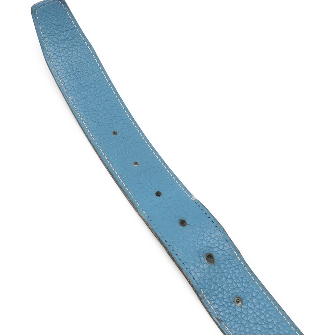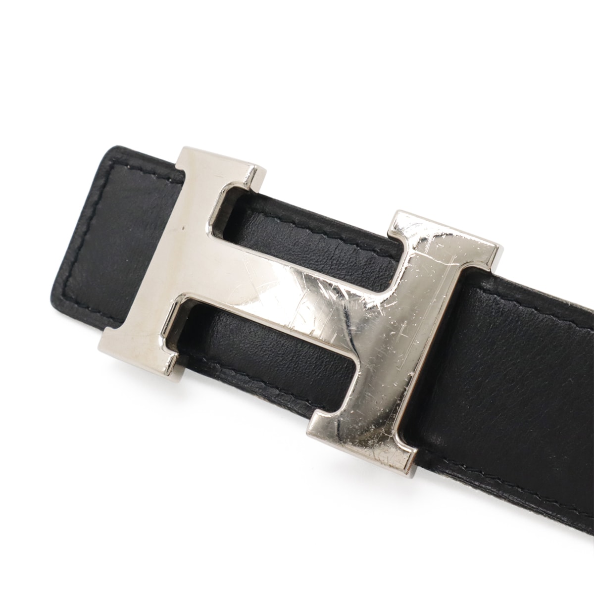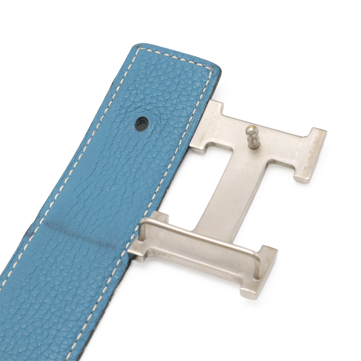 # HERMES エルメス Hベルト Hバックル リバーシブル トゴ ボックスカーフ BOXカーフ レザー ブルージーン 水色 ブラック 黒 シルバー金具 #95 □P刻印