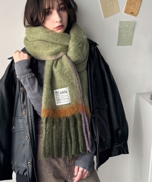 JaVaジャバコラボ ふんわりあったか。配色 ボリュームマフラー
