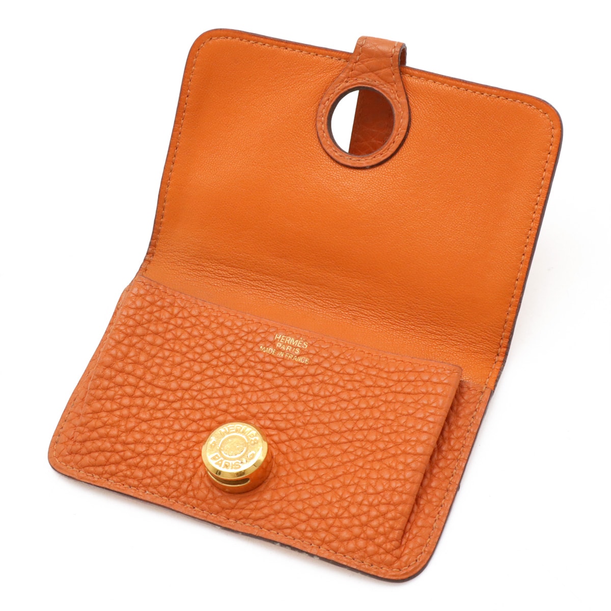 # HERMES エルメス ドゴン キーケース コインケース 小銭入れ コインパース カードケース チェーン付き トゴ レザー オレンジ ゴールド金具 □H刻印