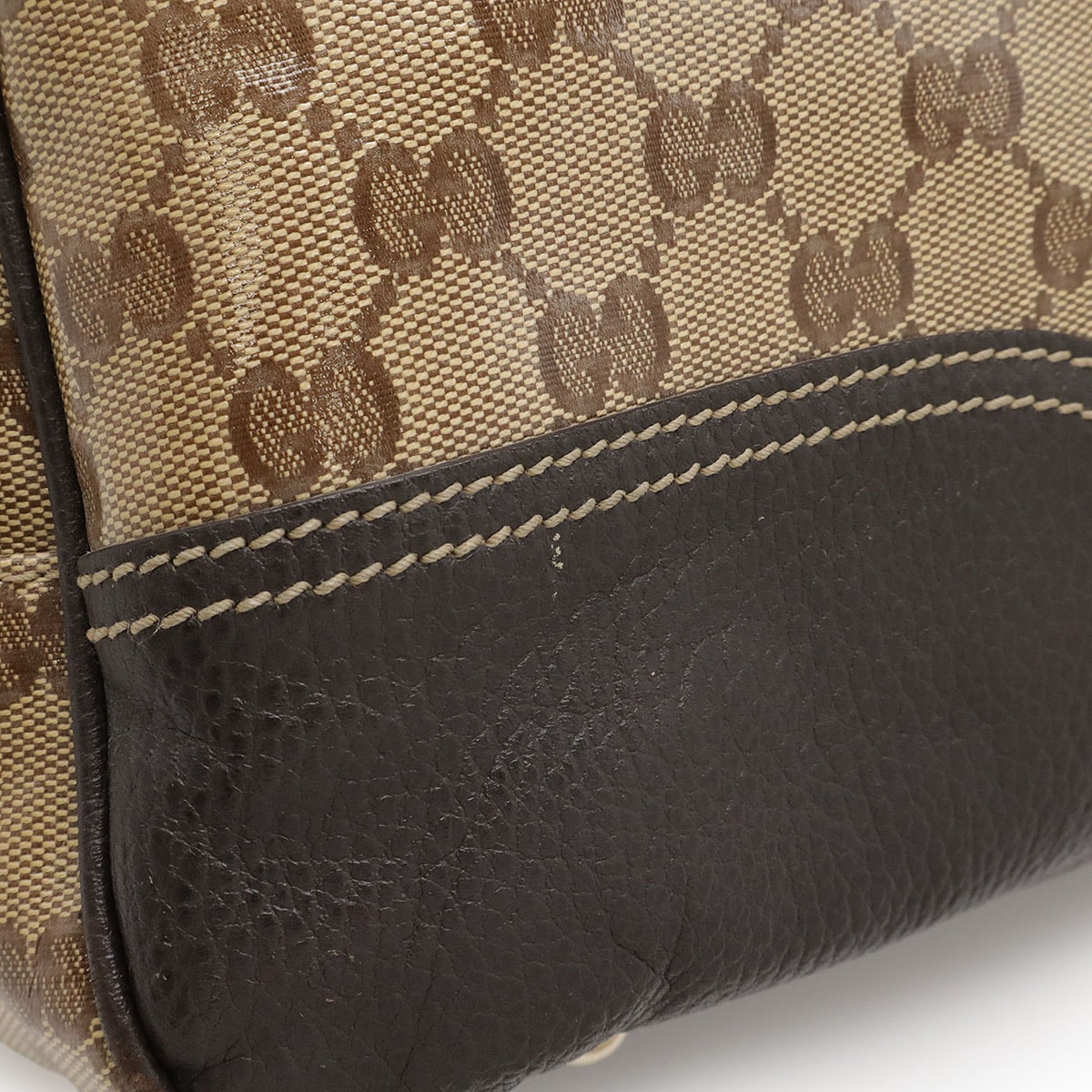 # GUCCI グッチ シェリー ボストンバッグ ハンドバッグ コーティングキャンバス レザー カーキベージュ ダークブラウン 茶 アウトレット品 293595
