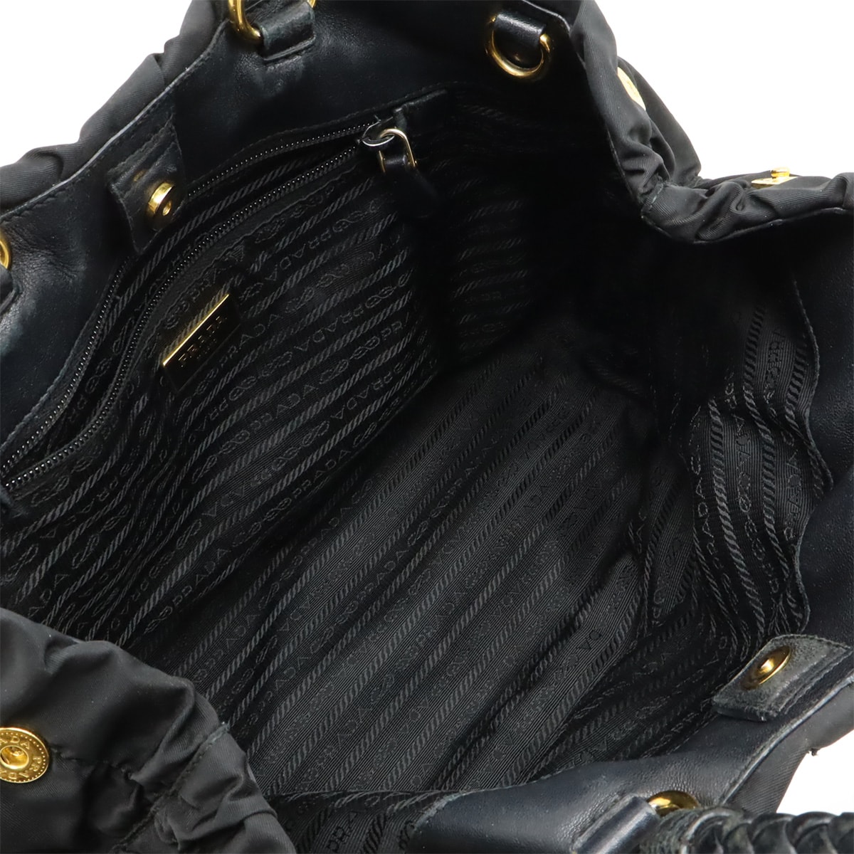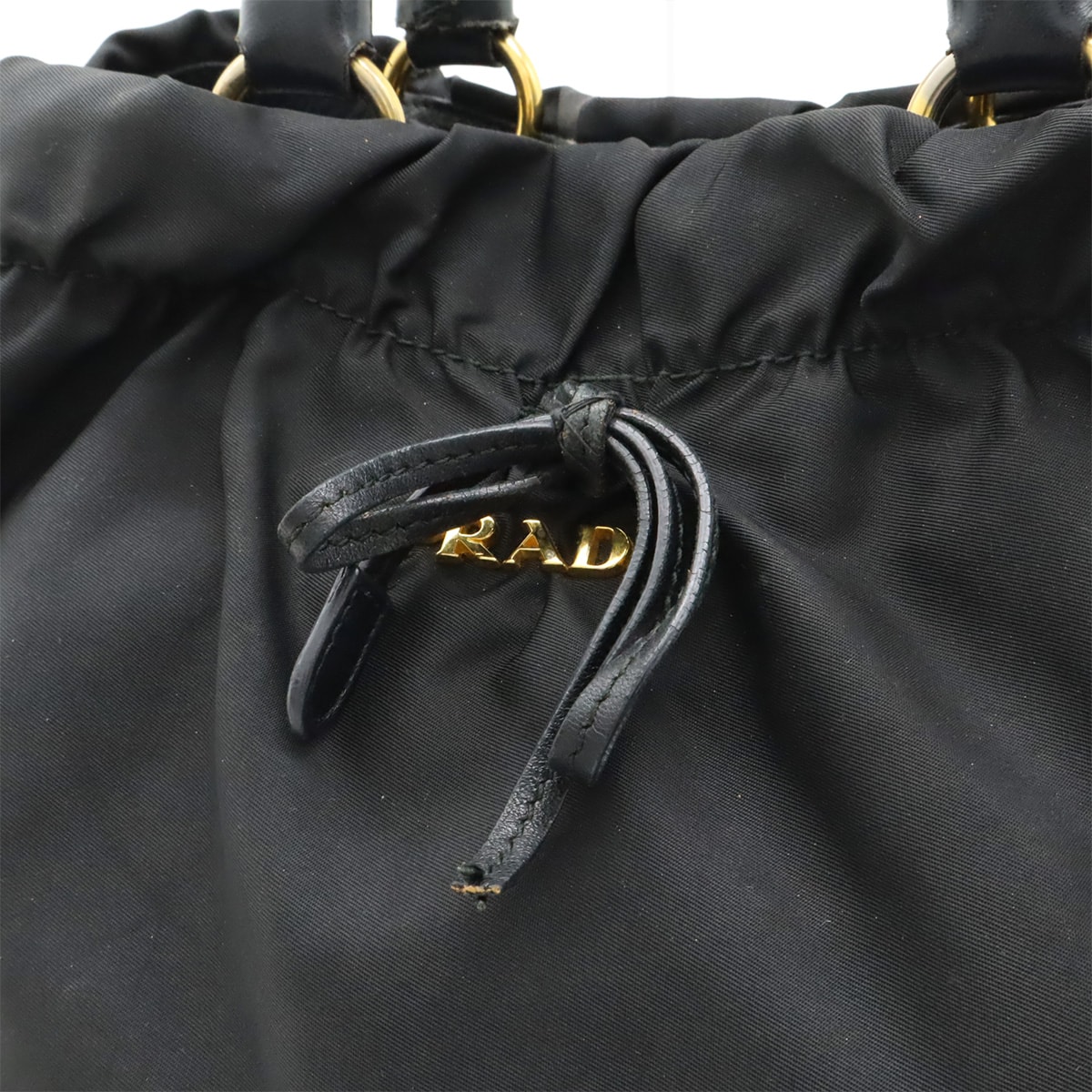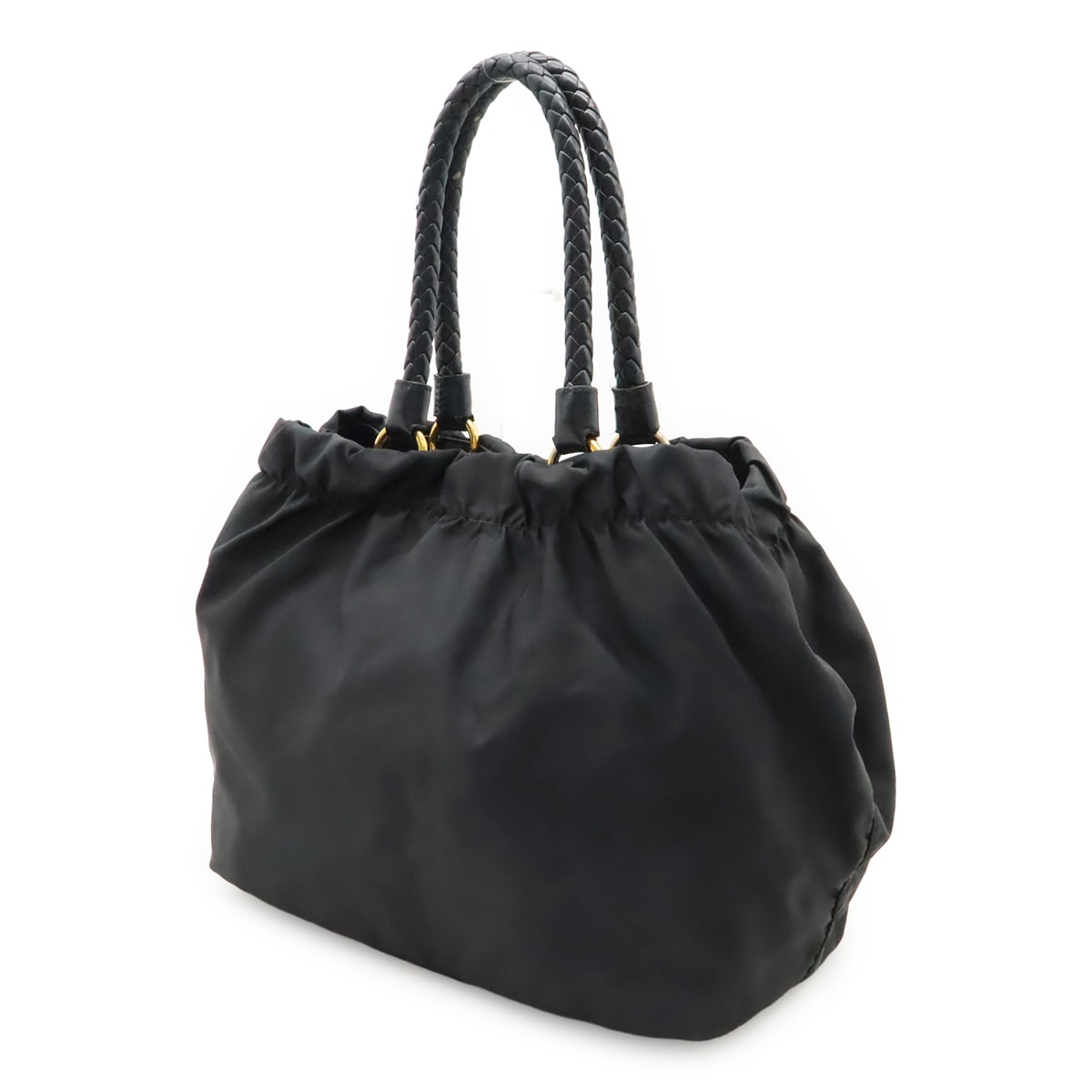 # PRADA プラダ テスート ギャザー リボン ハンドバッグ トートバッグ 編み込みハンドル ナイロン NERO ブラック ゴールド金具 ストラップ欠品 BN1970