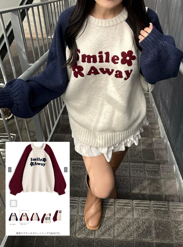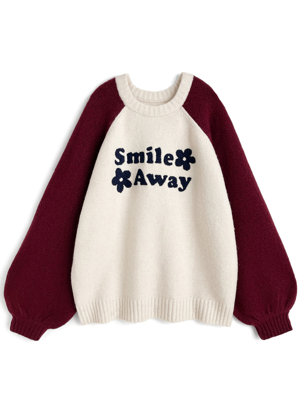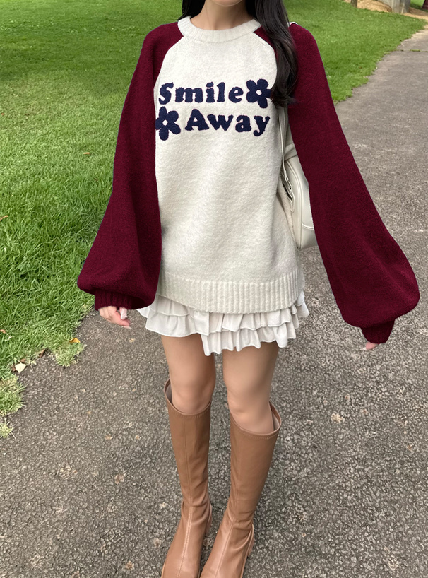 配色のラグランスリーブが大人の抜け感を演出するニットプルオーバー。