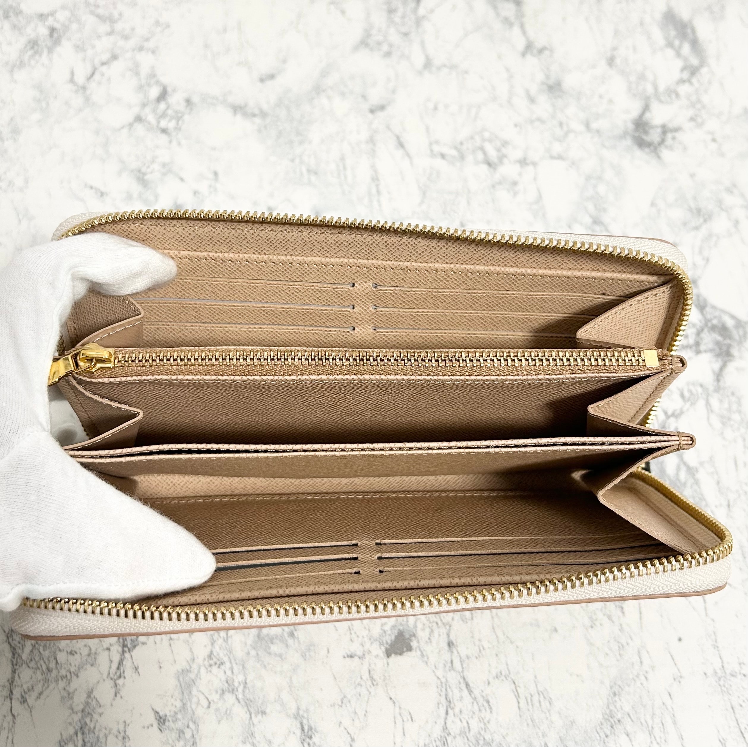 まち付きコンパートメントx3、紙幣用コンパートメント、ファスナー式コインケース、内フラットポケットx2、カード用ポケットx12