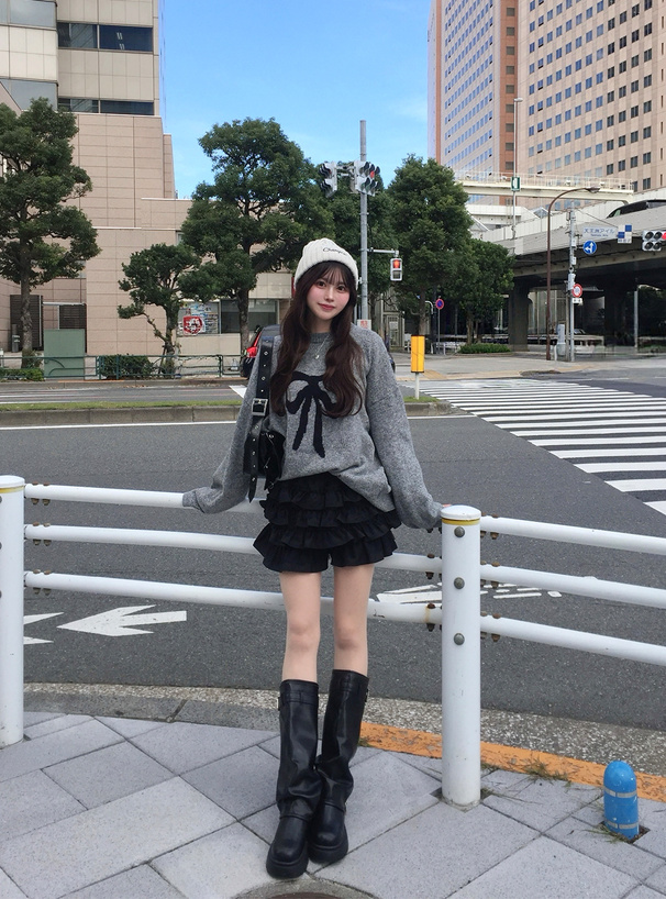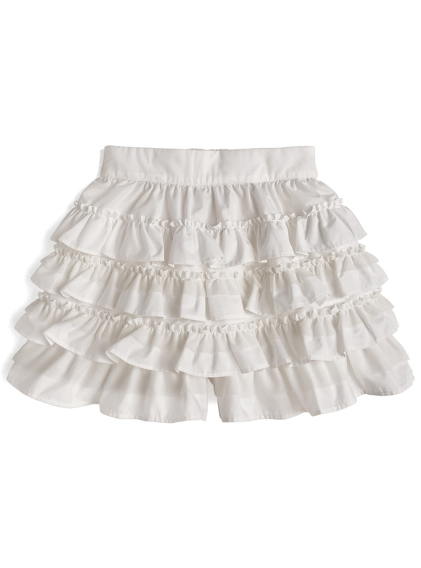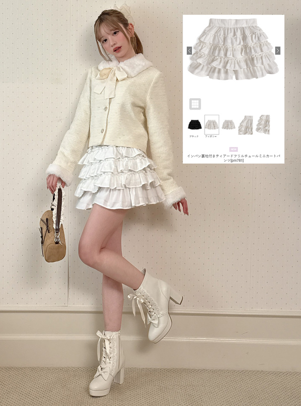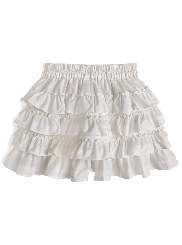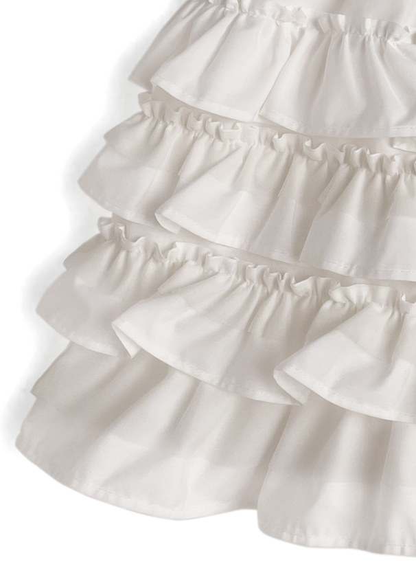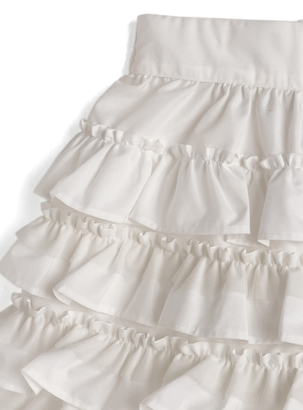 ふんわり広がるティアードフリルが可憐な印象を与えるスカパン。