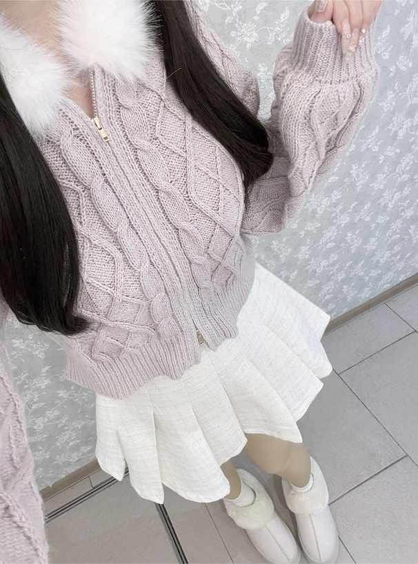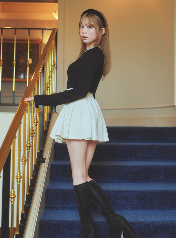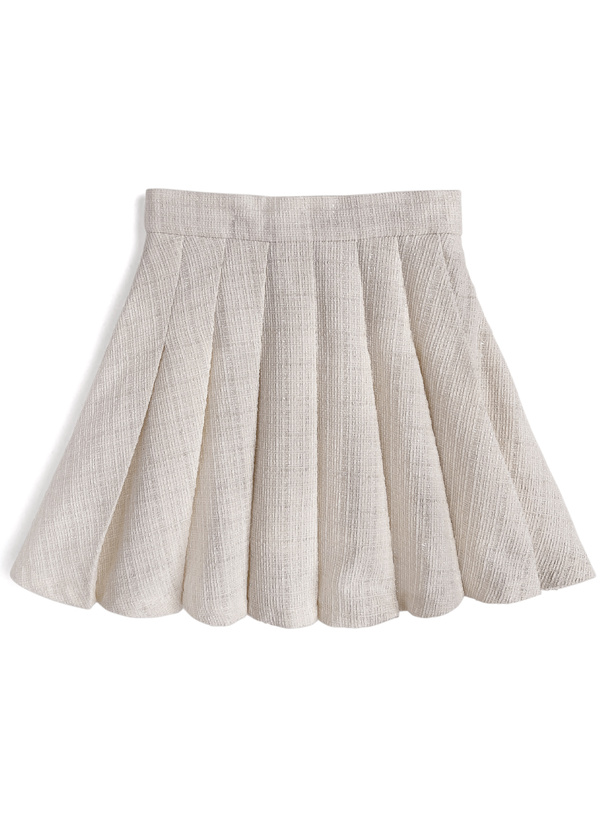 プリーツデザインが動く度にひらひらと揺れて、可憐な印象をプラスする。