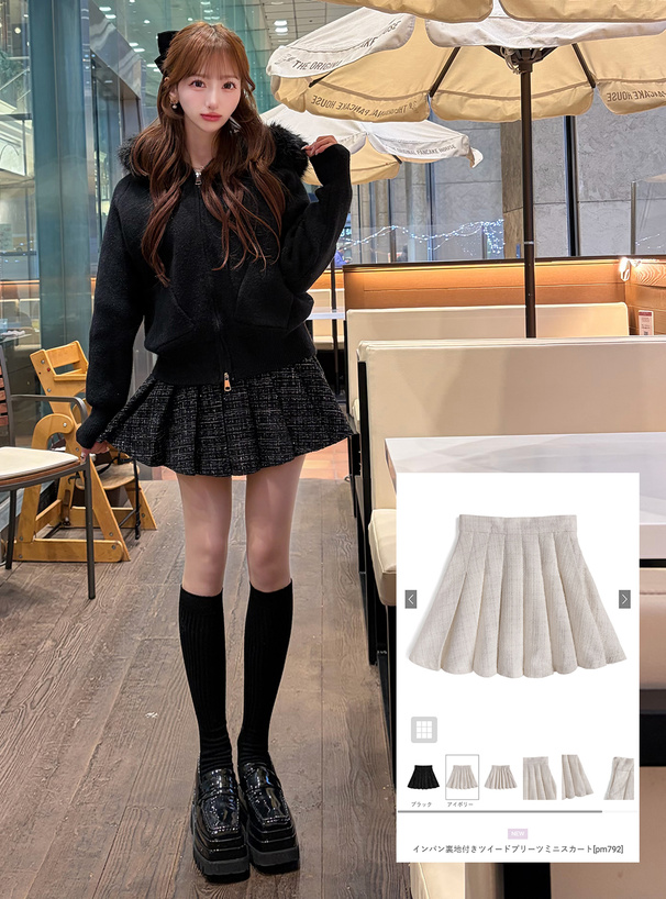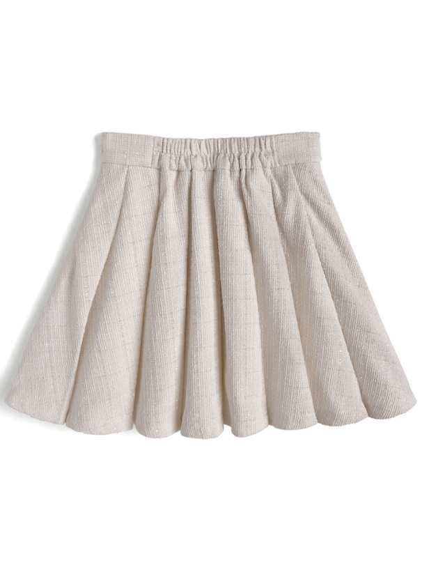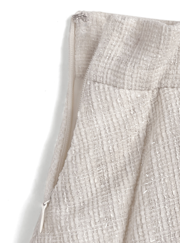 キラッと輝くラメ糸を織り込んだ、品のあるツイード生地のスカート。