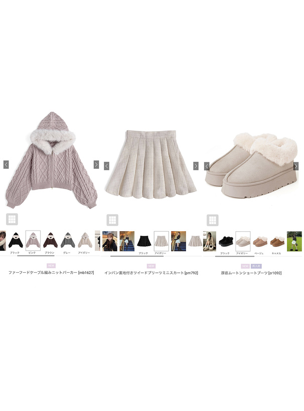 ノーマルなニットやカットソー合わせも華やかなコーデに仕上がる。