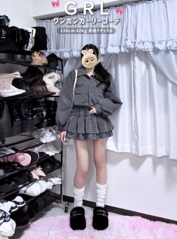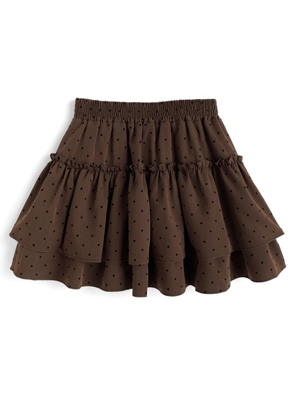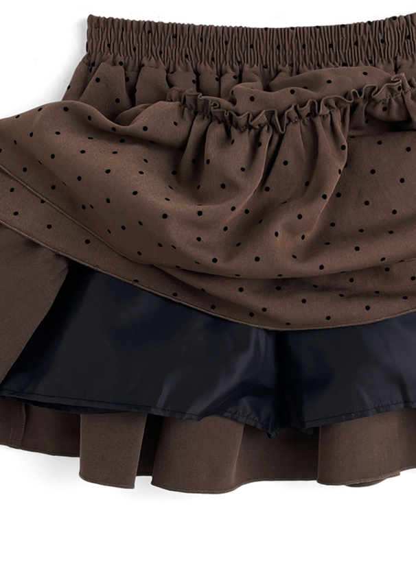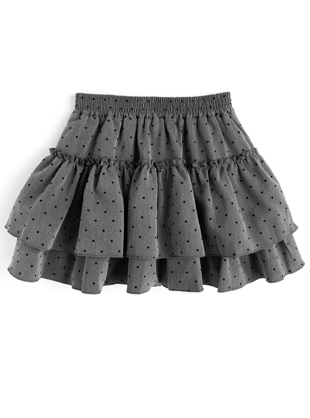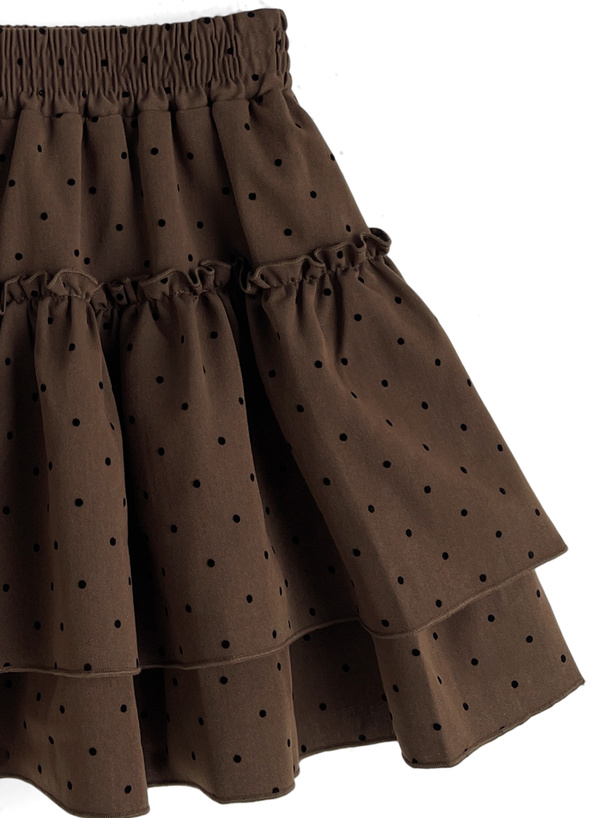フロッキーの細かい水玉柄を全体にあしらったガーリーなミニスカート。