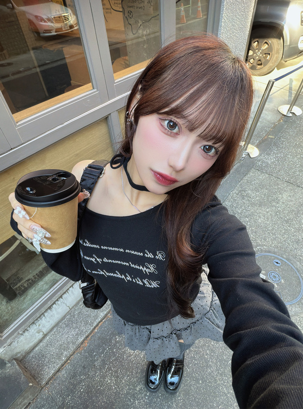 シンプルなニット合わせも、甘めにブラウスやシャギートップスを合わせるのもおすすめ。