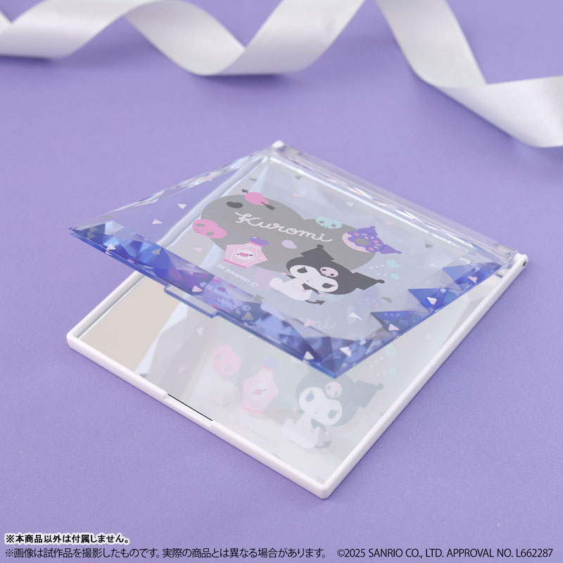 シンプルなのにオシャレでかわいい! クロミの魅力がぎゅっと詰まった「シンプルかわいいレイアウト」デザインのジュエルミラーが登場♪ ふた表面の凹凸カットがキラキラ光る、おしゃれでかわいいジュエルタイプのミラーです。