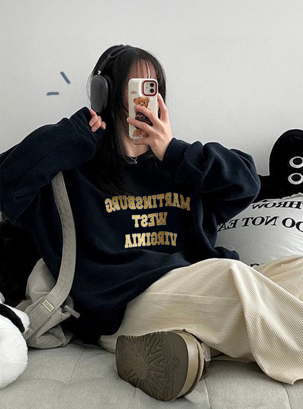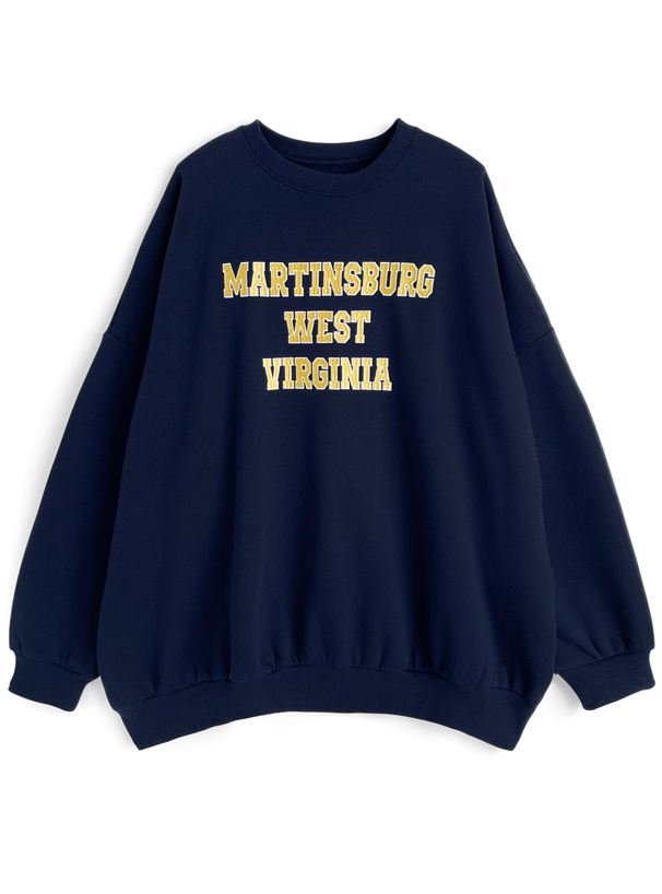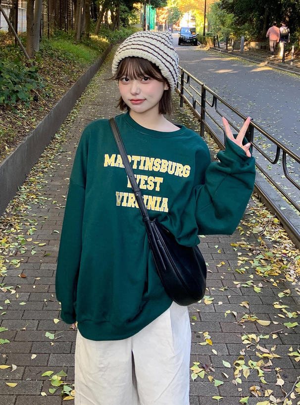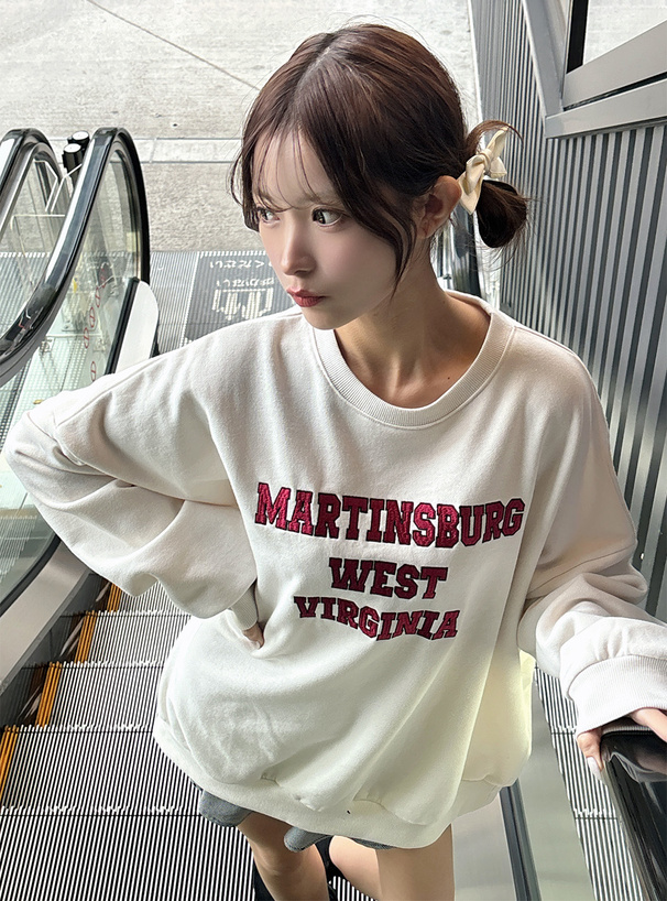 フロントのカレッジ風ロゴがポイントになったスウェットトップス。