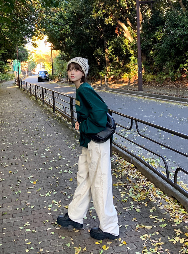 着丈が長めなので、ゆるっとワンピース風に着こなしてもかわいい。