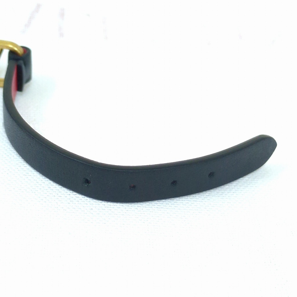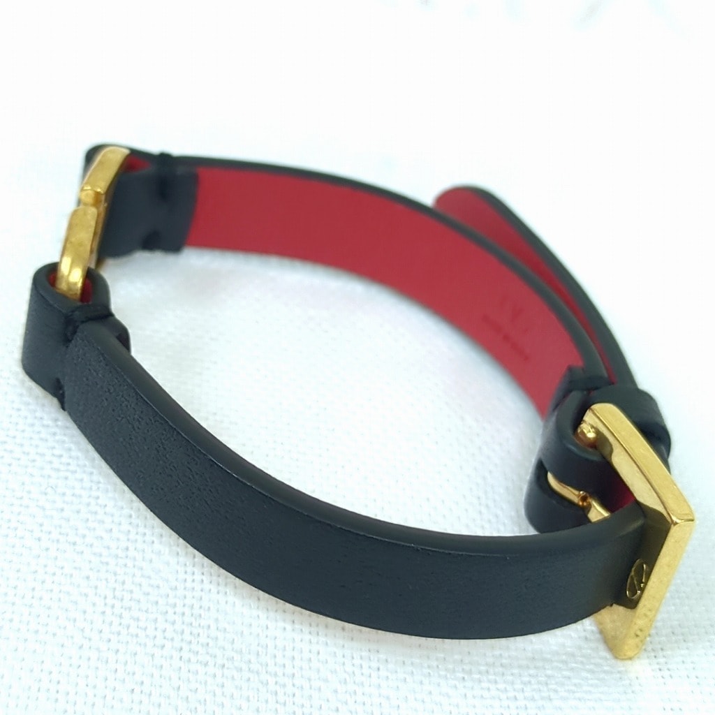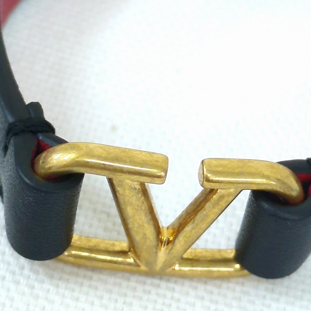 1006-3y-7507ym 【商品内容】 VALENTINO ヴァレンティノガラヴァーニ ブレスレット レザー イタリア製 カラー:ブラック ゴールド レッド 【コンディション】 金属ロゴバックル部分若干スレくすみあり。 中古品ですので写真の状態をよくご覧ください。 【サイズ】 ロゴモチーフ部分:縦約1cm×横2.5cm ベルト幅:約1cm 腕回り:約16~19cm ベルト穴4 【付属品】 袋有(若干すれよごれあり)