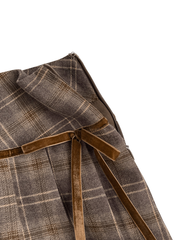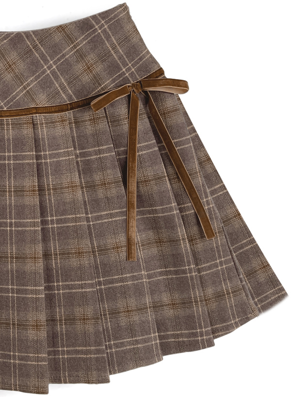 インパン裏地付きチェック柄サイドリボンプリーツミニスカート
