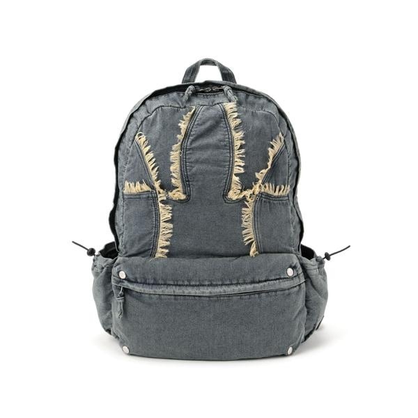 ウォッシュをかけたデニム素材をメインボディに採用したバックパック。