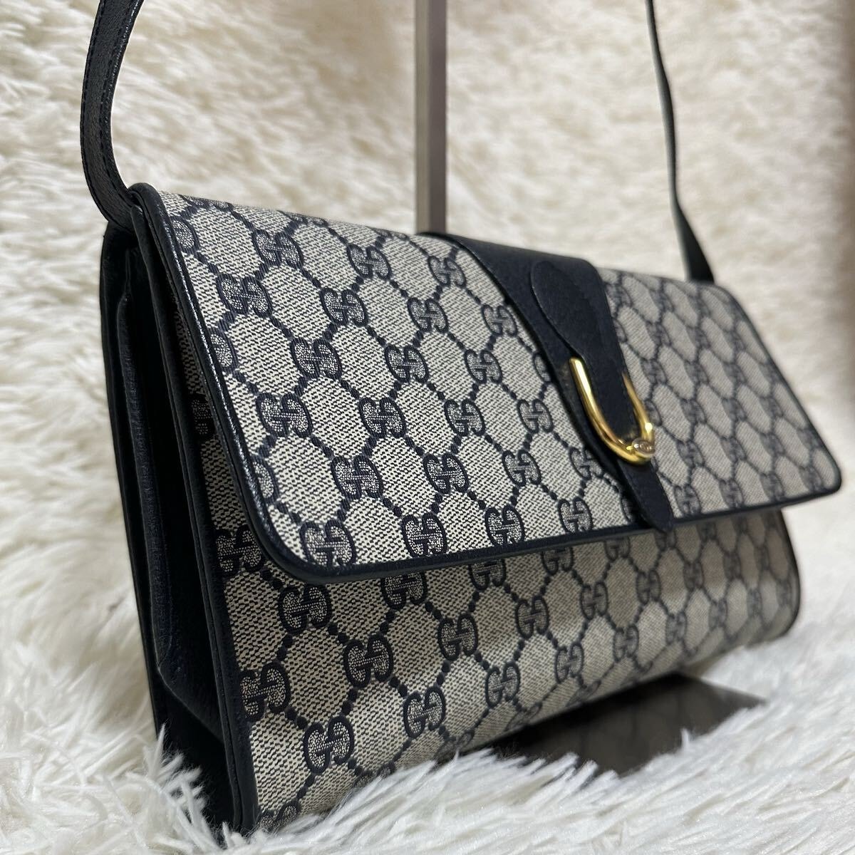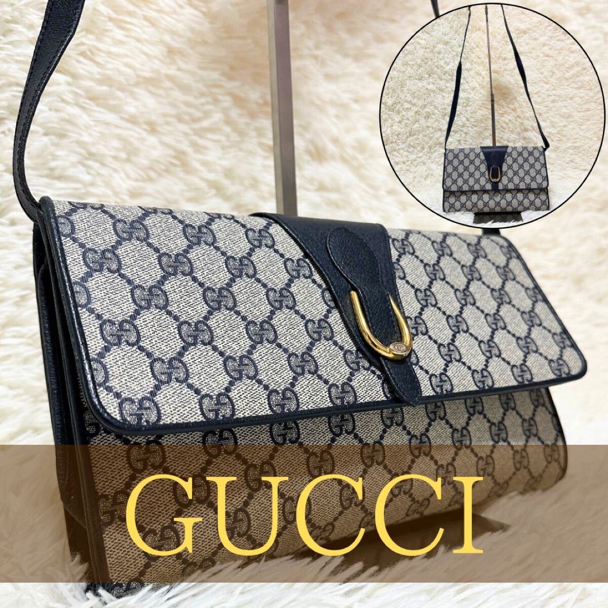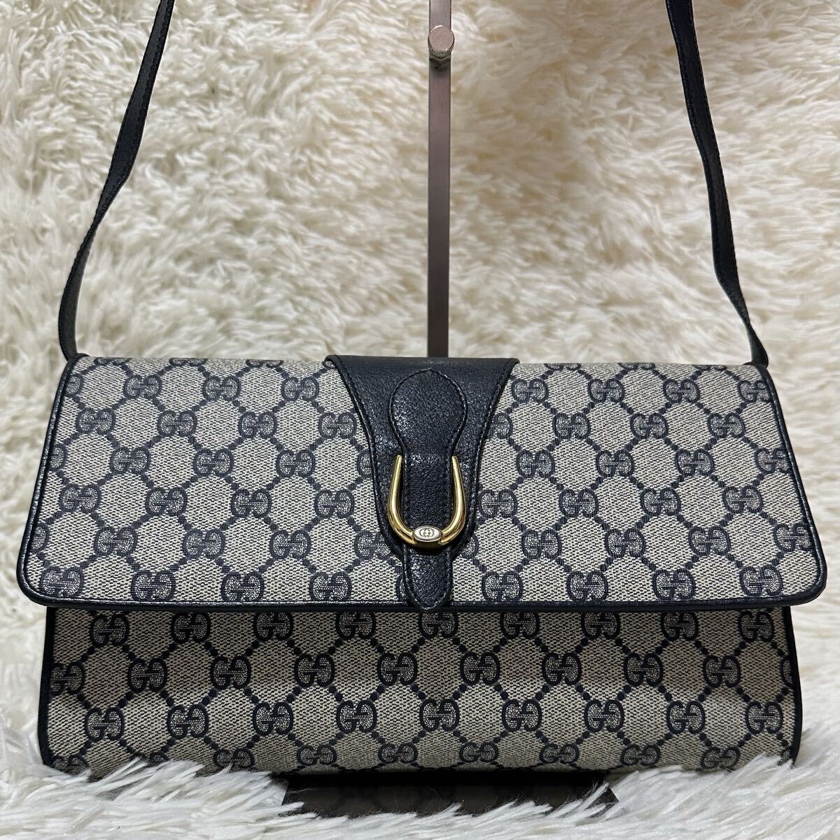 OLDGUCCI 希少 レア オールドグッチ GG 総柄 レザー ショルダーバッグ ポシェット 金 2way