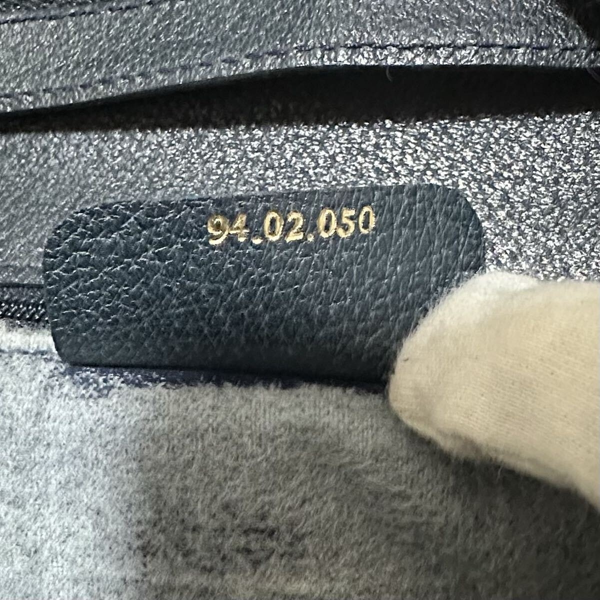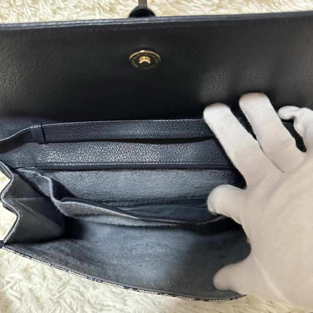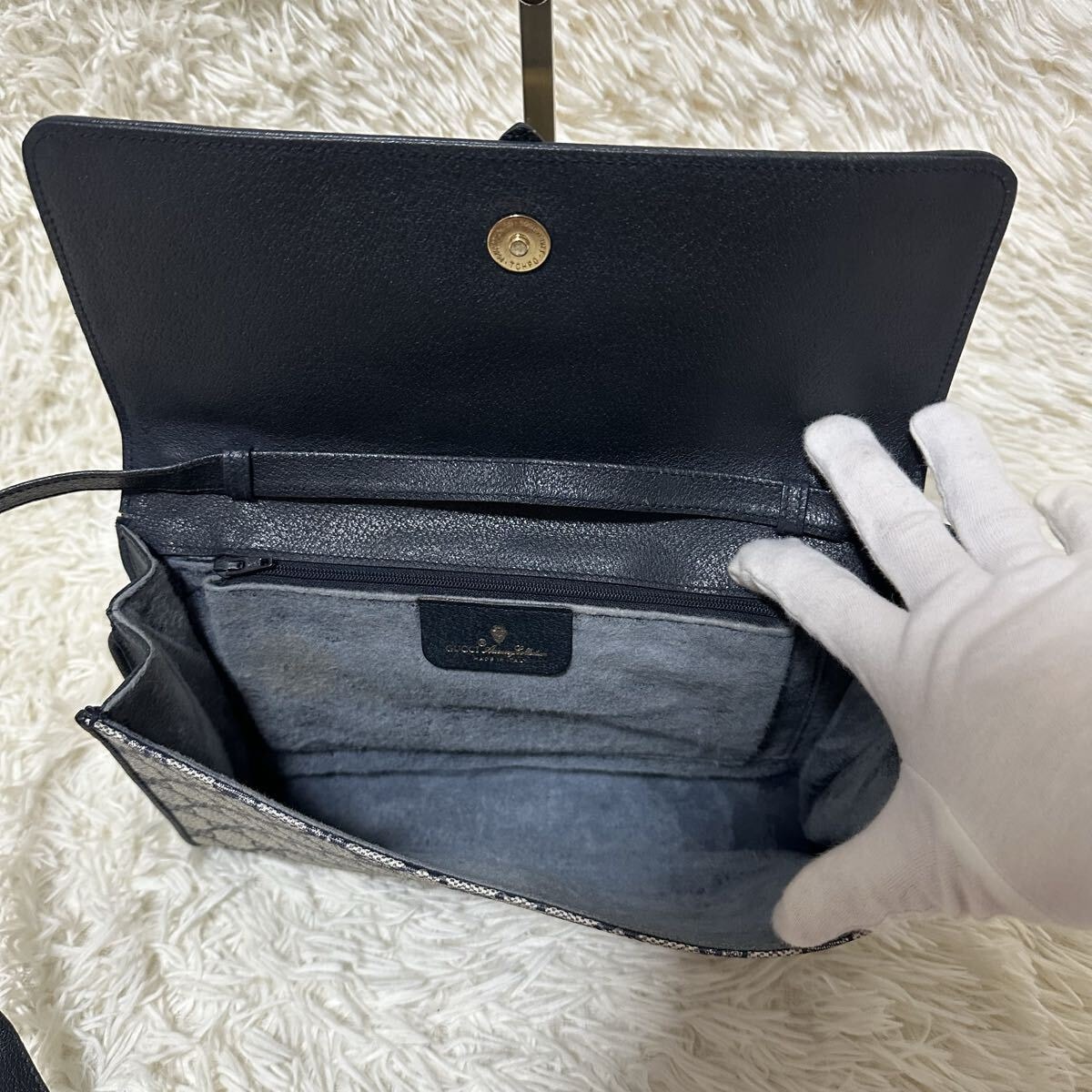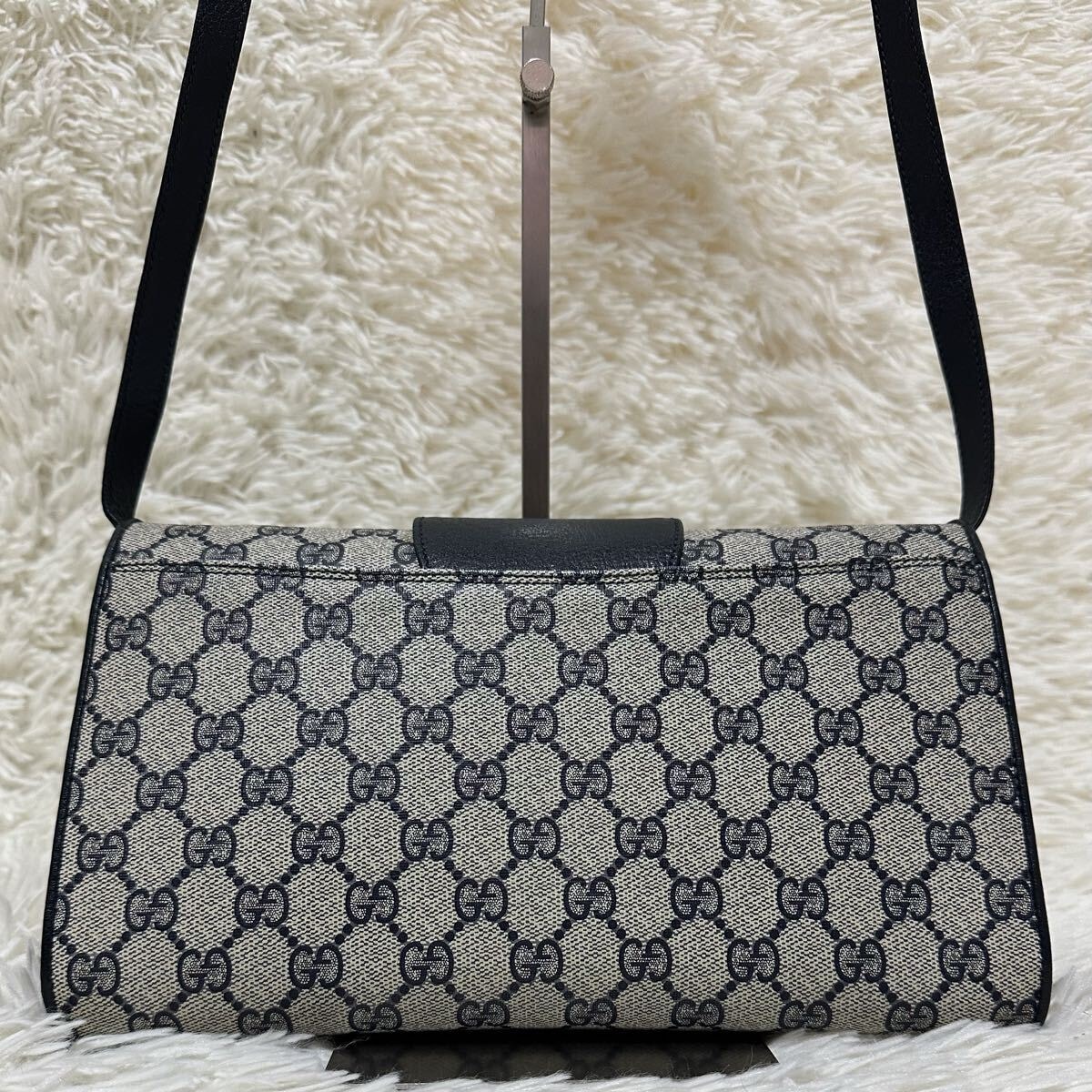 GGキャンバス柄のベージュとネイビーのショルダーバッグ。