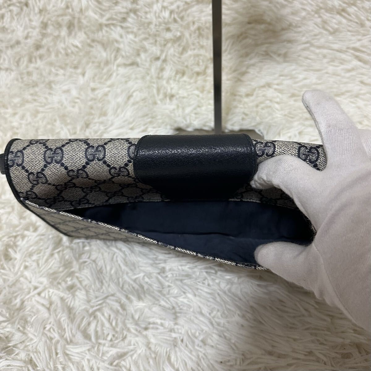 GUCCI オールド グッチ マイクロGGスプリーム シェリー PVC カーフ レザー 本革 巾着 ショルダー バッグ ベージュ系 G金具 クラッチバッグ ポシェット クロスボディ 斜め掛け GG柄 pvcレザー