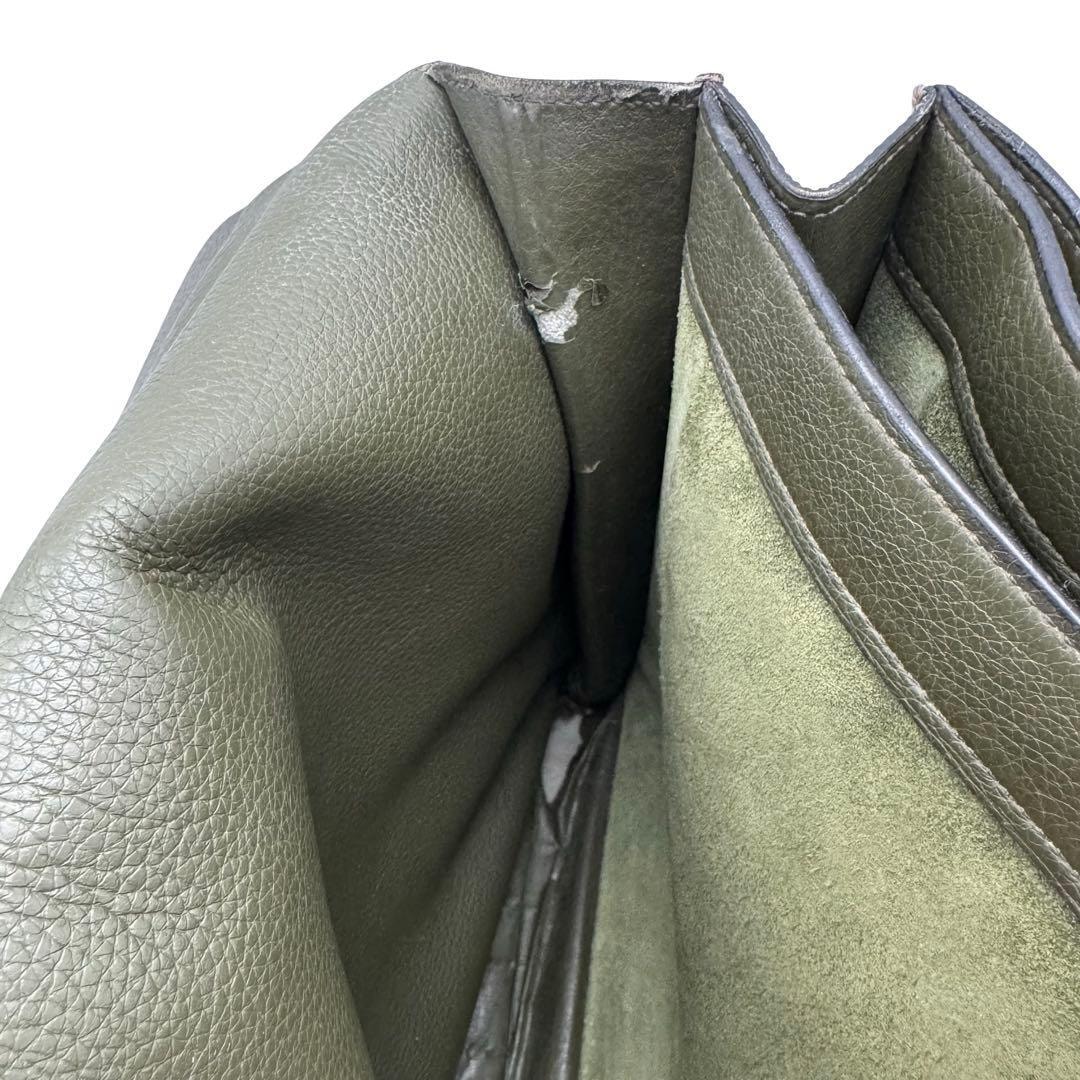 仕切り3ヶ所あり、内側の側面レザーに剥がれがあります。