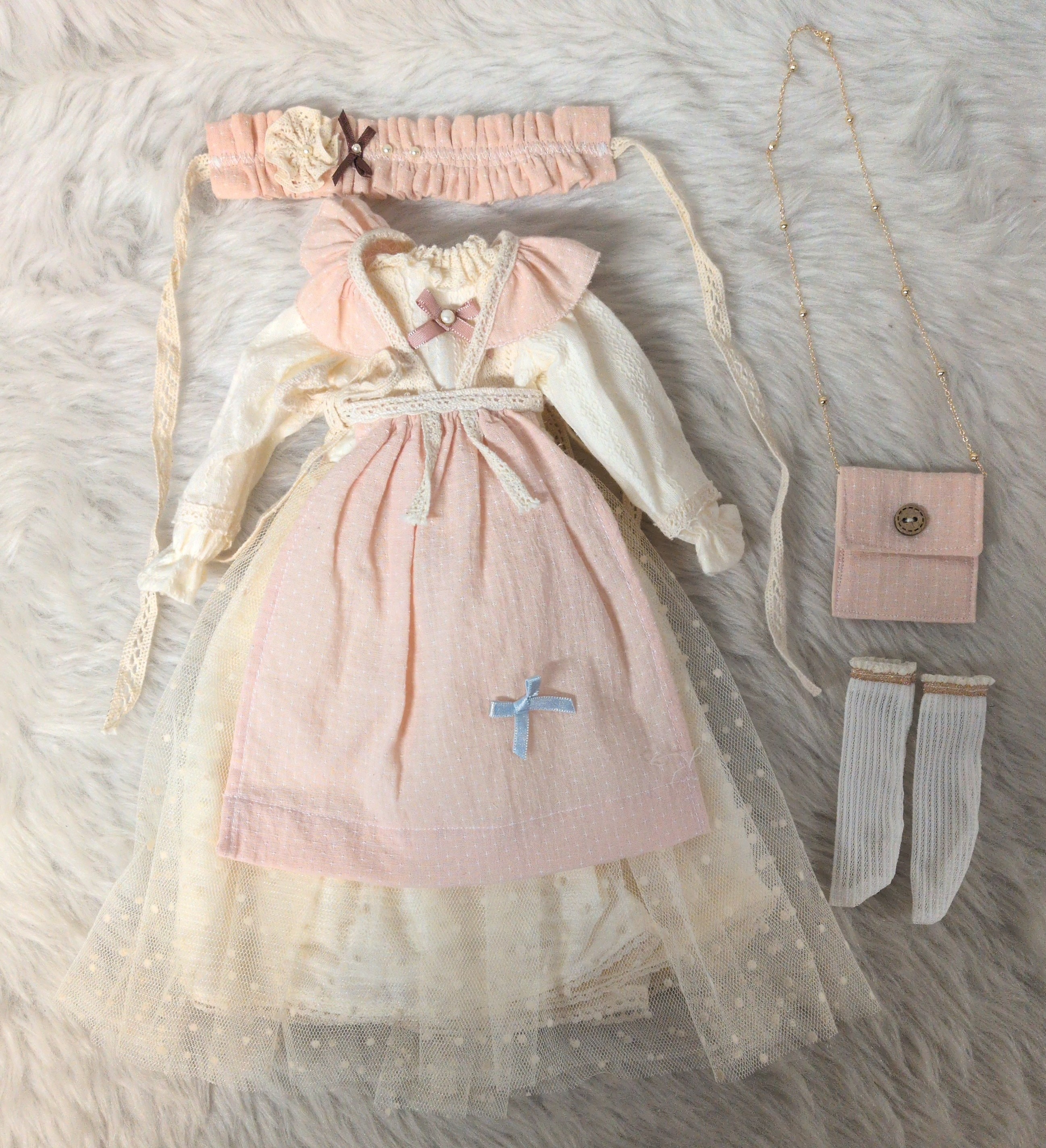 ドール衣装 ネオブライスサイズ フリルワンピースとエプロンのコーディネート