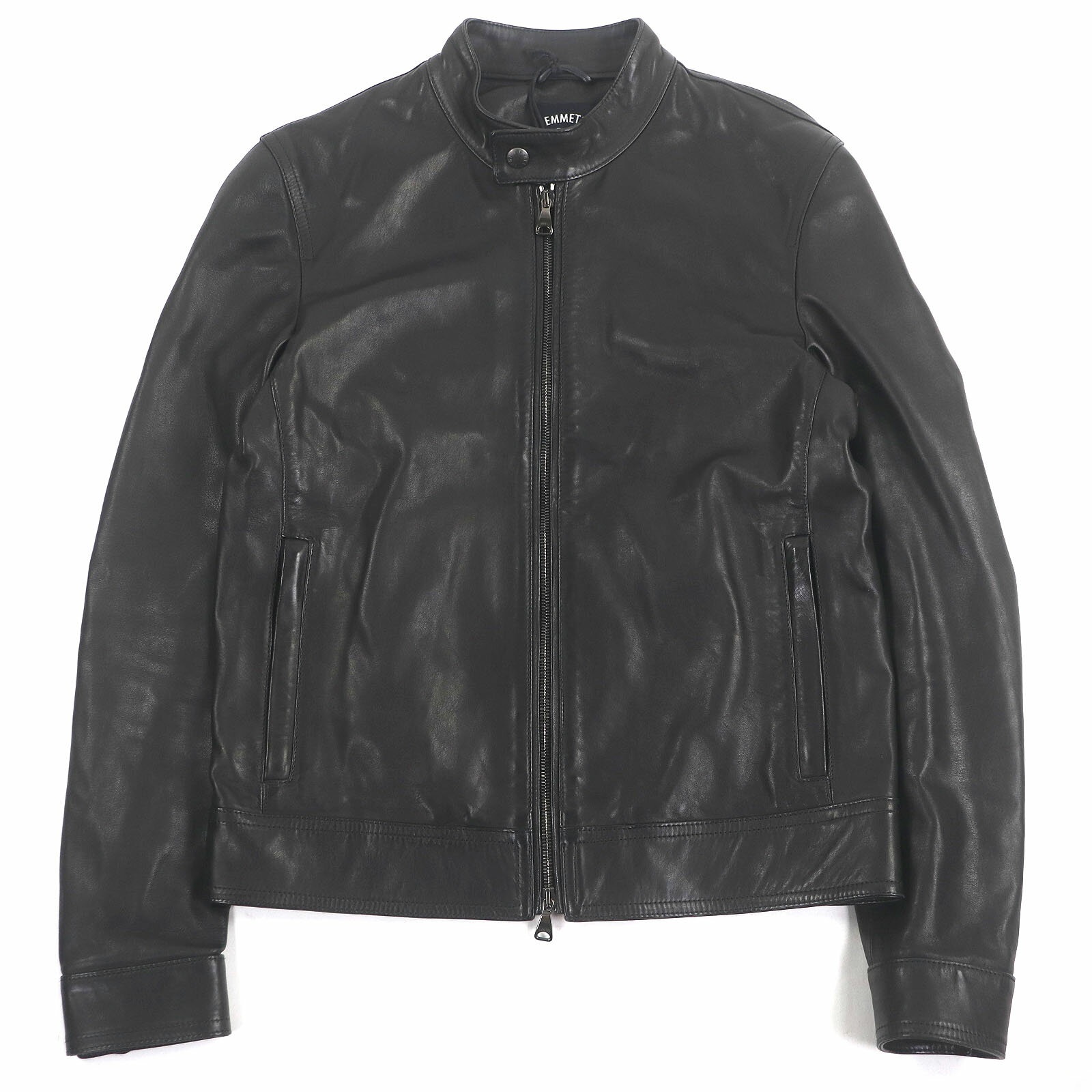 極美品□EMMETI エンメティ ラムスキン SOVEREIGN別注 スタンドカラー レザージャケット ライダース ブラウン 48 イタリア製 正規品 メンズ【中古】