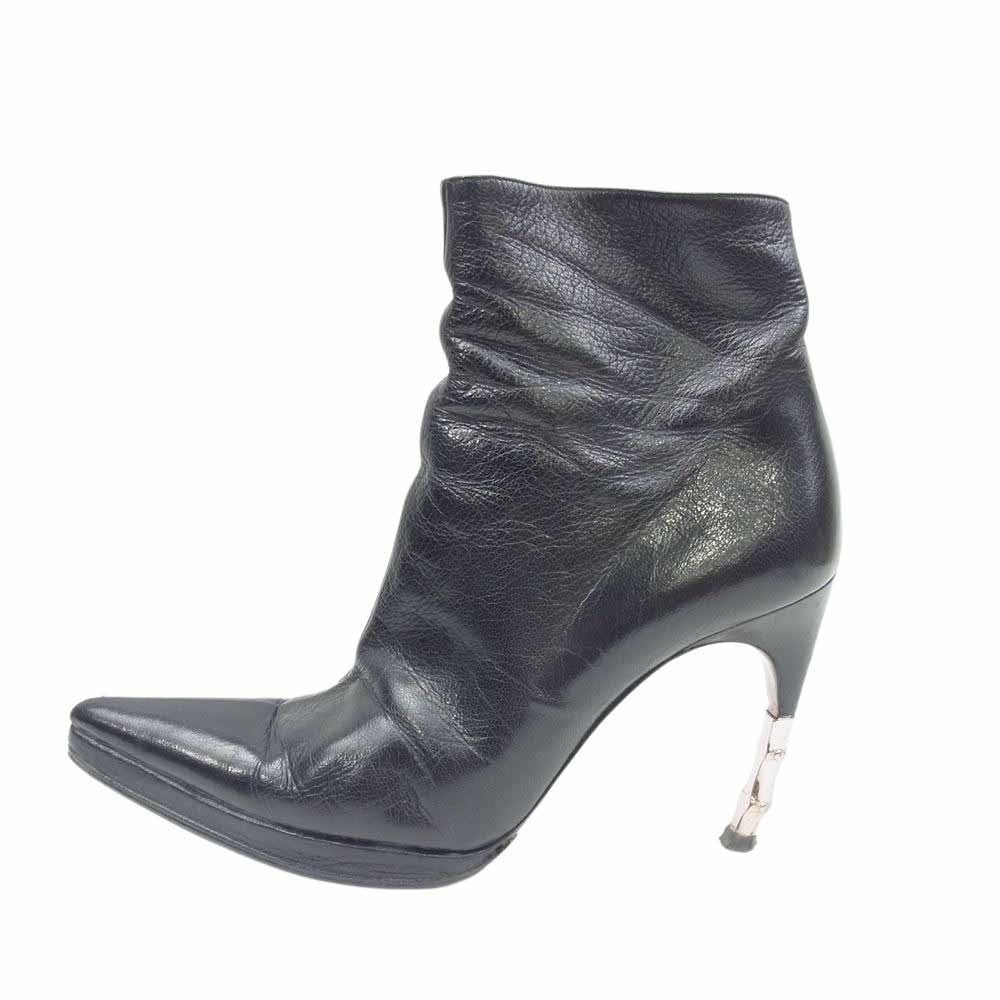 GUCCI グッチ パンプス 131449 メタル バンブーヒール ショート ブーツ ブラック系 7【中古】