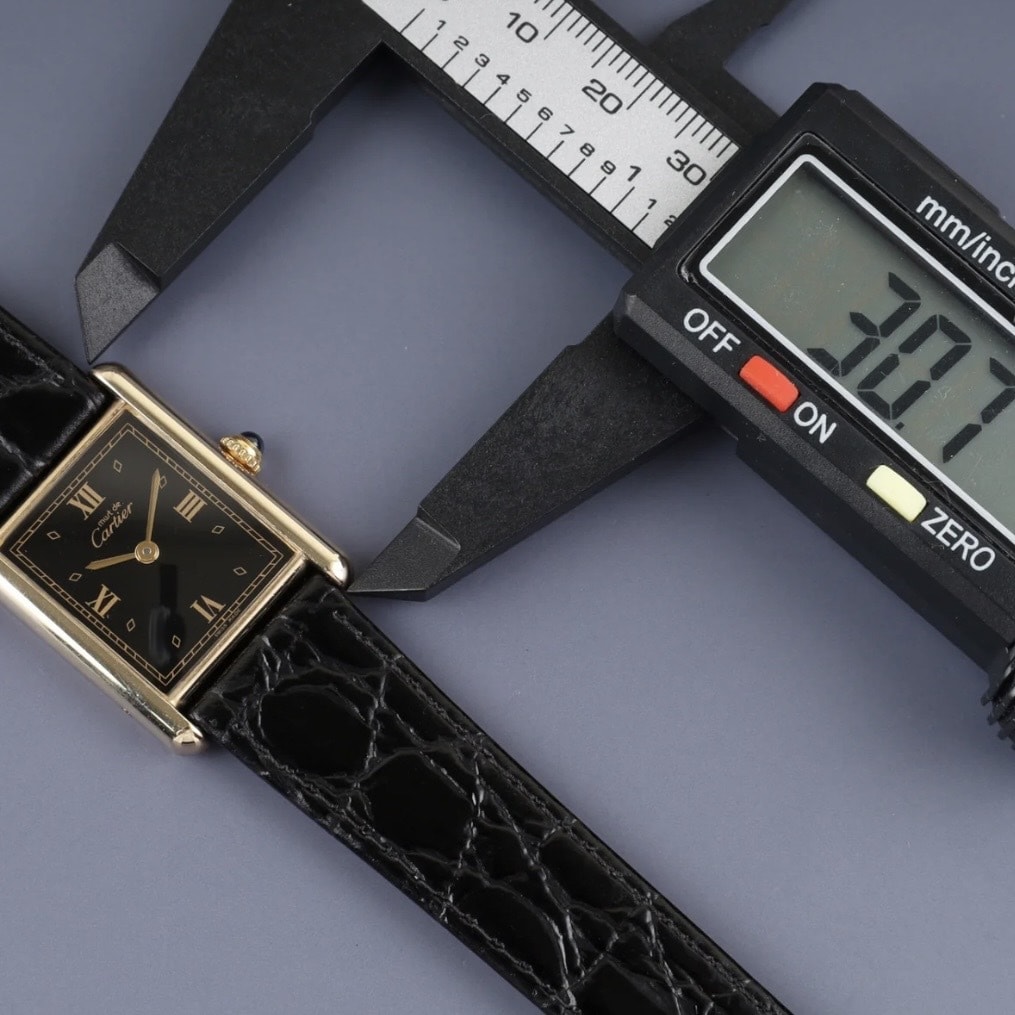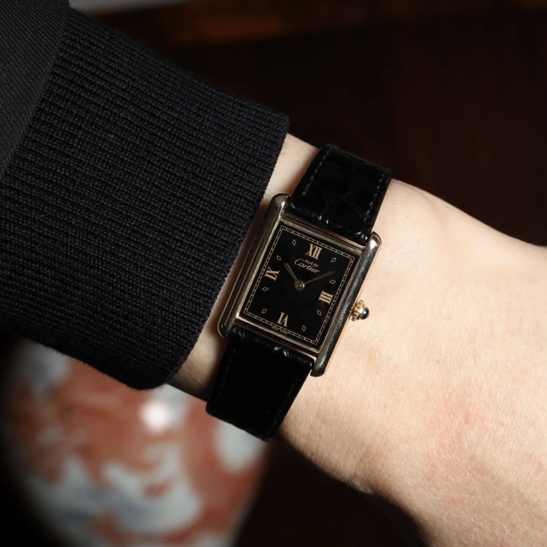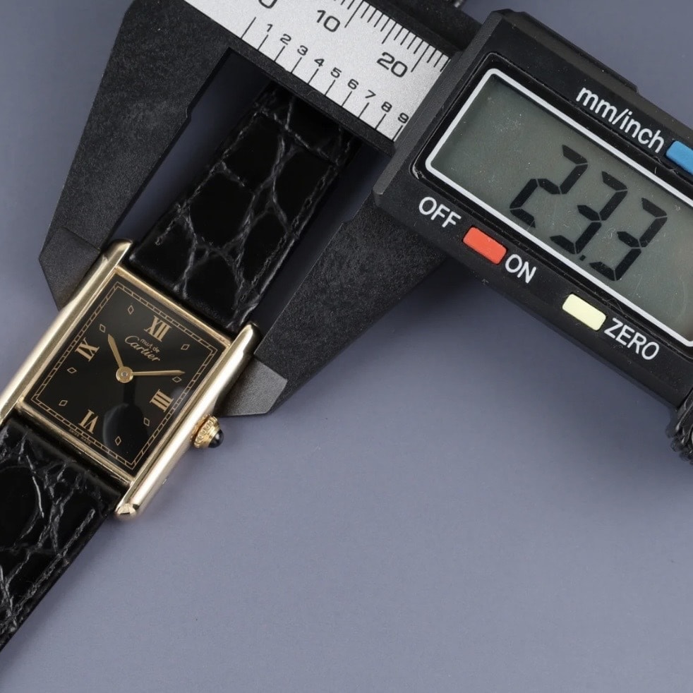 カルティエ マストタンク LM 590005 クォーツ CAL.- SV925 革 純正尾錠(GP)ブラック飛びローマン文字盤 1982年頃~1995年頃 カルティエブティックにてコンプリートサービス済み
