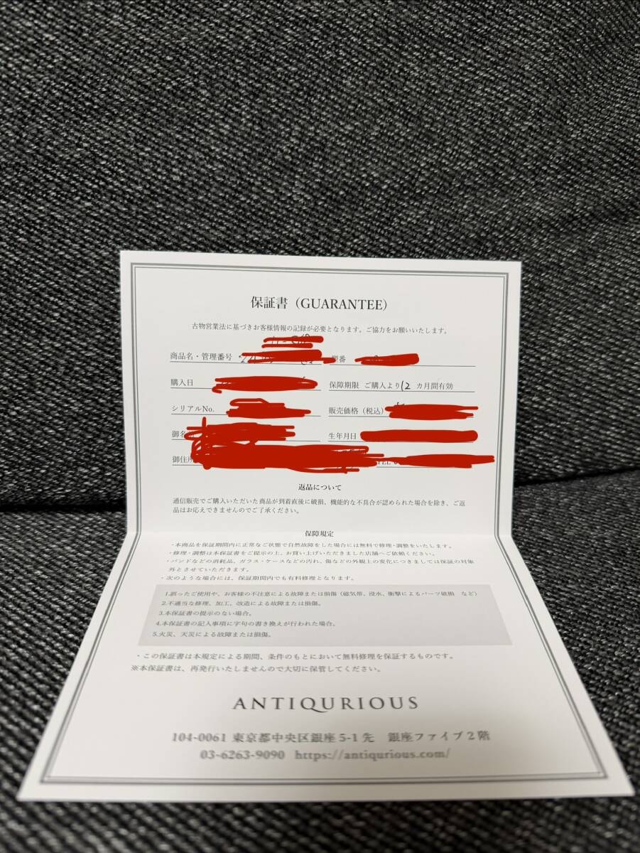 付属品は購入時付いてきた保証書(本物証明書)とCartierの時計ケースです。