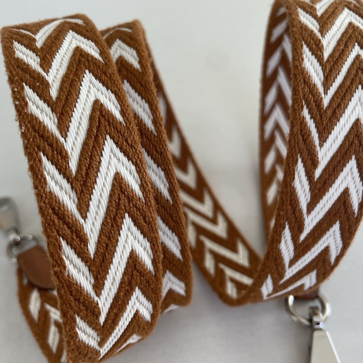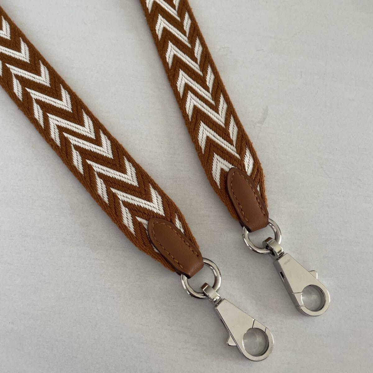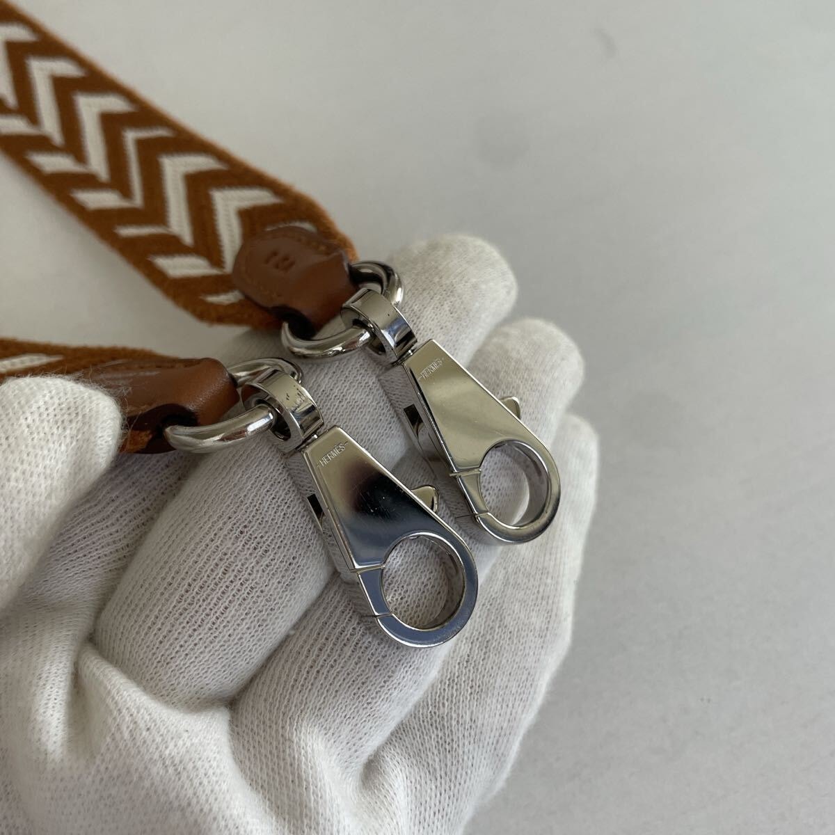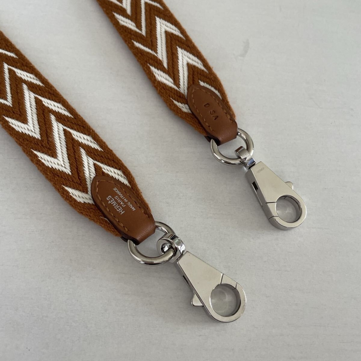 【エルメス】バンドリエール サングルカヴァル ジグザグ 105 ショルダーストラップ キャンバス ヴォースイフト レザー シルバー金具 HERMES 105㎝ 25㎜ エクリュ ブラウン 茶色 ホワイト 白