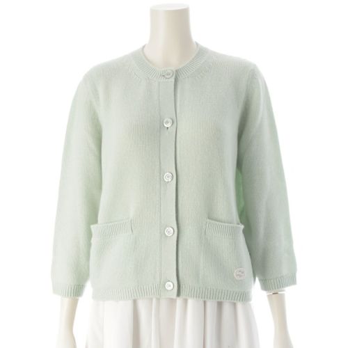 Laurel/ローレル シルク55%&カシミア45%/丸襟セーター/7分丈 サイズ36 ミント/薄緑 ビーズ装飾 管NO.A7-59