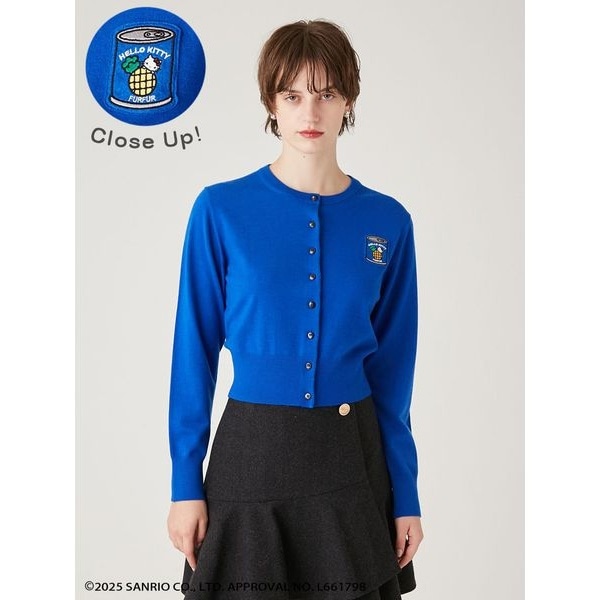 ハローキティとのコラボレーション。フルーツやトマトの缶詰をモチーフにしたワッペンがアイコニックでキュートなクルーネックカーディガン。上品なデザインにユーモラスなワンポイントを加え、大人の遊び心を表現しました。コンパクトなサイズ感で、さまざまなボトムスとバランス良く合わせやすい一着です。