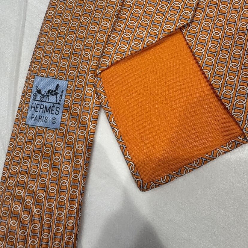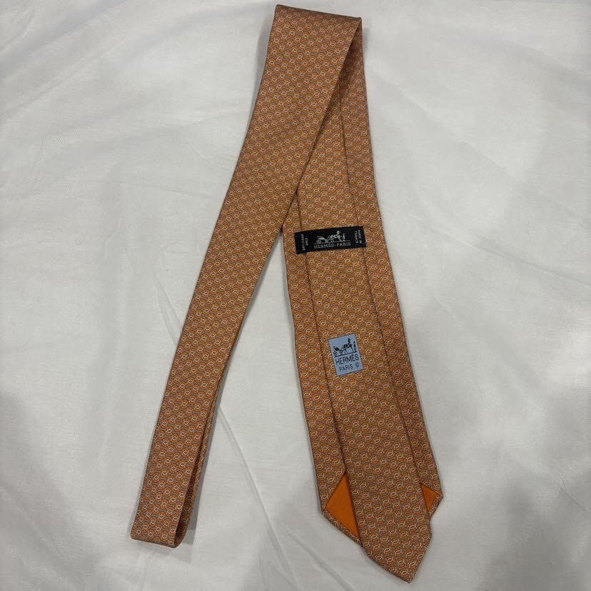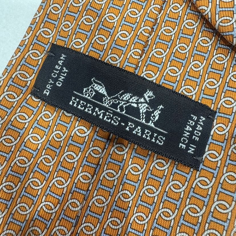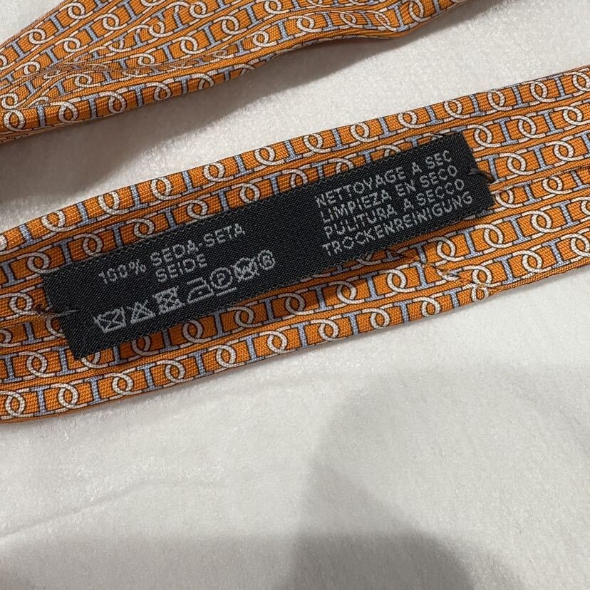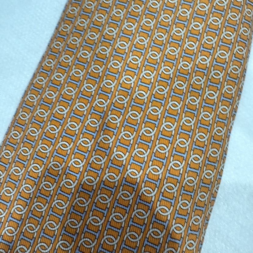 エルメス シェーヌダンクル柄 ネクタイ オレンジ