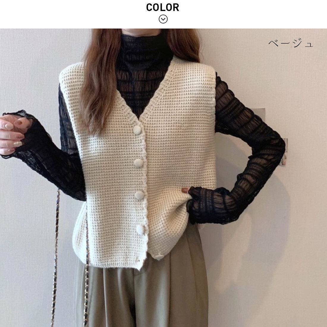 くるみボタンが可愛らしさをプラスしてくれるVネックニットベストが登場♪ <br>