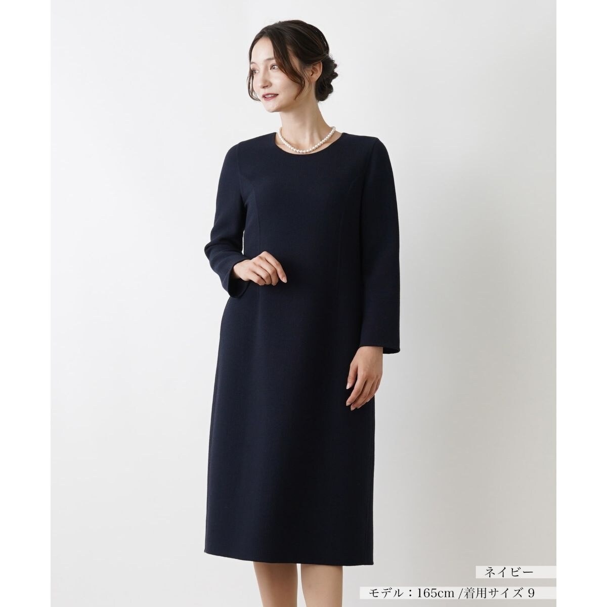 表面感のあるやや厚手の生地で仕立てた、ミディアム丈のサックワンピース。浅めのネックラインが大人の女性らしい上品な佇まいを演出。巧妙なパターンメイクによりすとんと落ちるような美しいシルエットを作り出しています。生地には程よい伸縮性があり、足捌きも良好。身体のラインを拾いにくく、ナチュラルに体型カバーできるのも嬉しいポイントです。バックファスナーにより着脱が可能。
