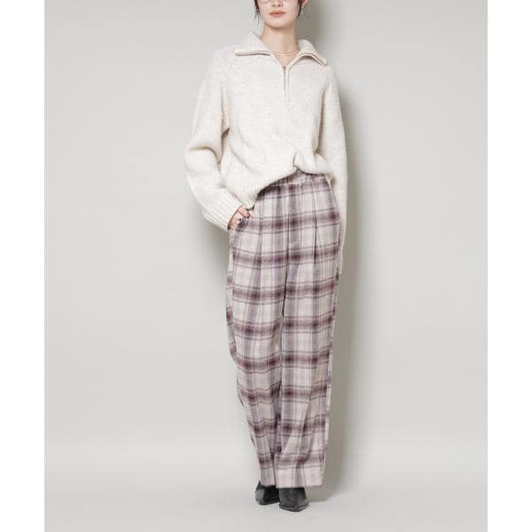 トレンドのオンブレチェック柄がスタイリングのポイントになるロングパンツ。起毛感ある素材が秋冬らしい印象の一着。同素材のブラウスとのセットアップスタイルもおすすめです。