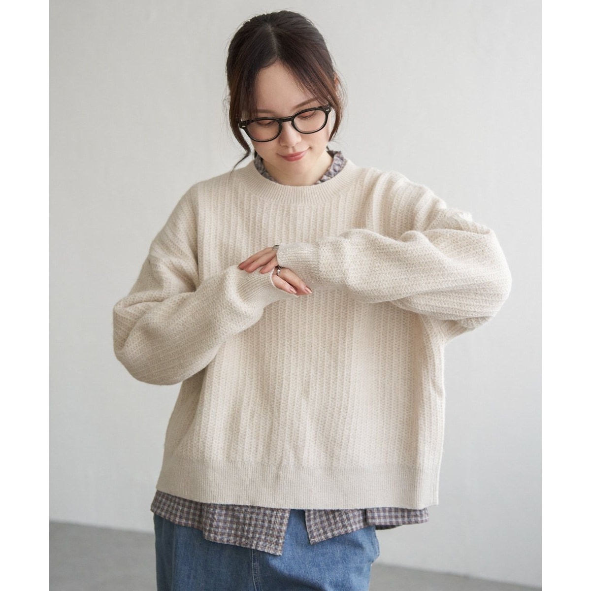 ウォッシャブルカラーミックス畦ニットプルオーバー