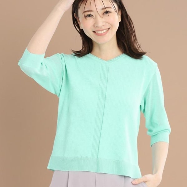【WEB先行カラーあり/手洗い可/アンサンブル可】バイカラー五分袖ニット