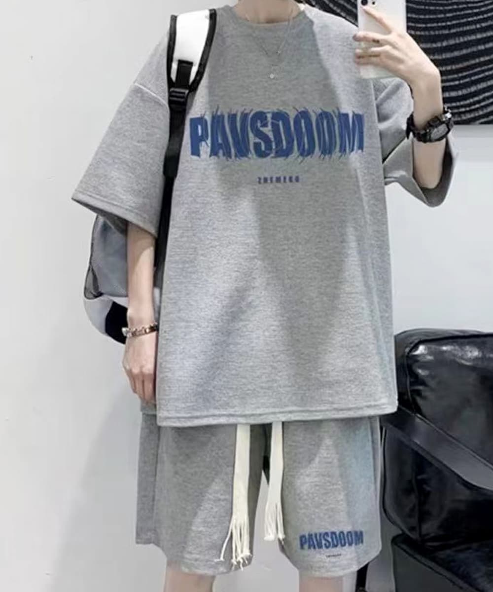 カジュアルスタイルを表現するTシャツとハーフパンツのセットアップ。