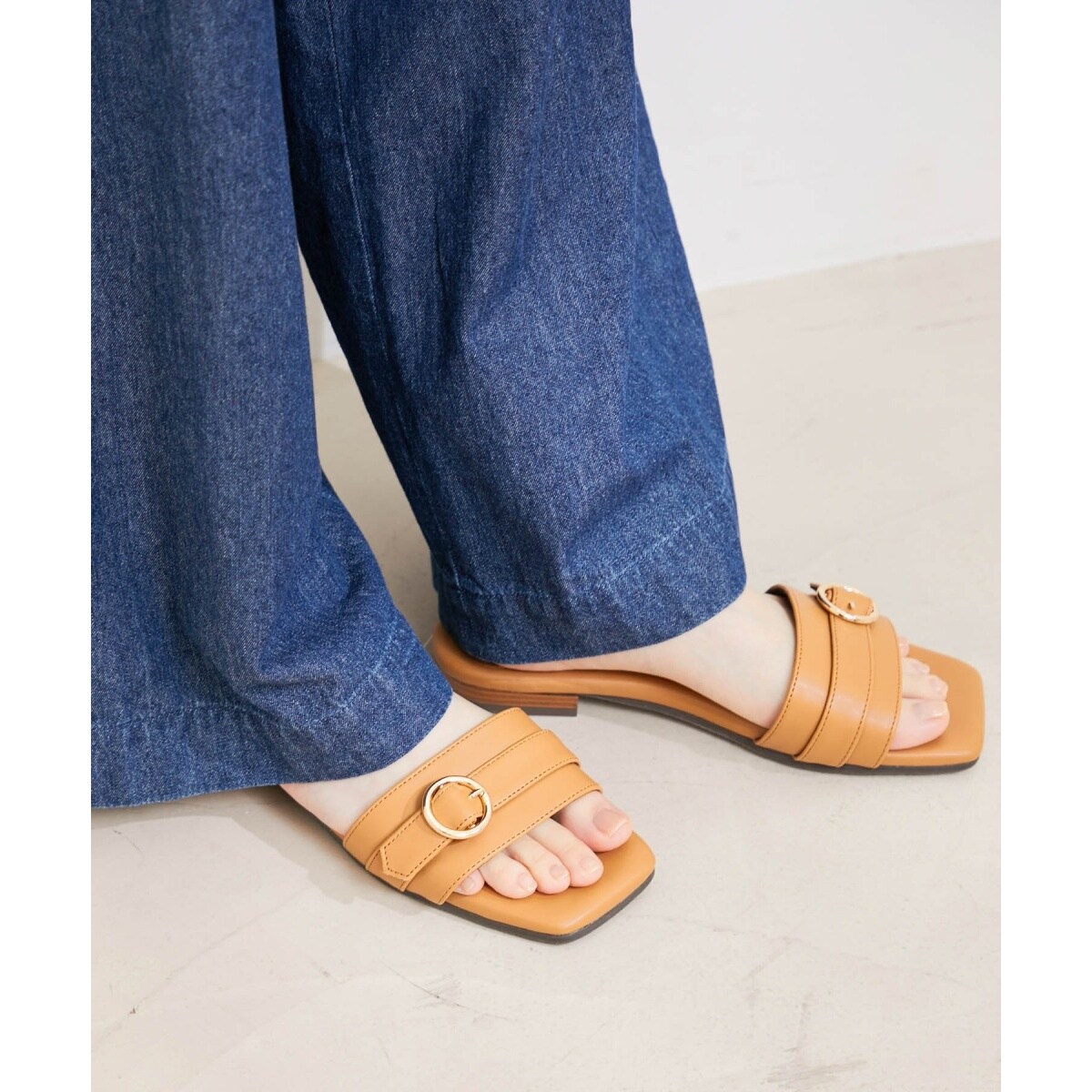 ゆったりとしたワンピースやパンツに合わせても、丸いメタルバックルがしっかりワンポイントになるデザイン。