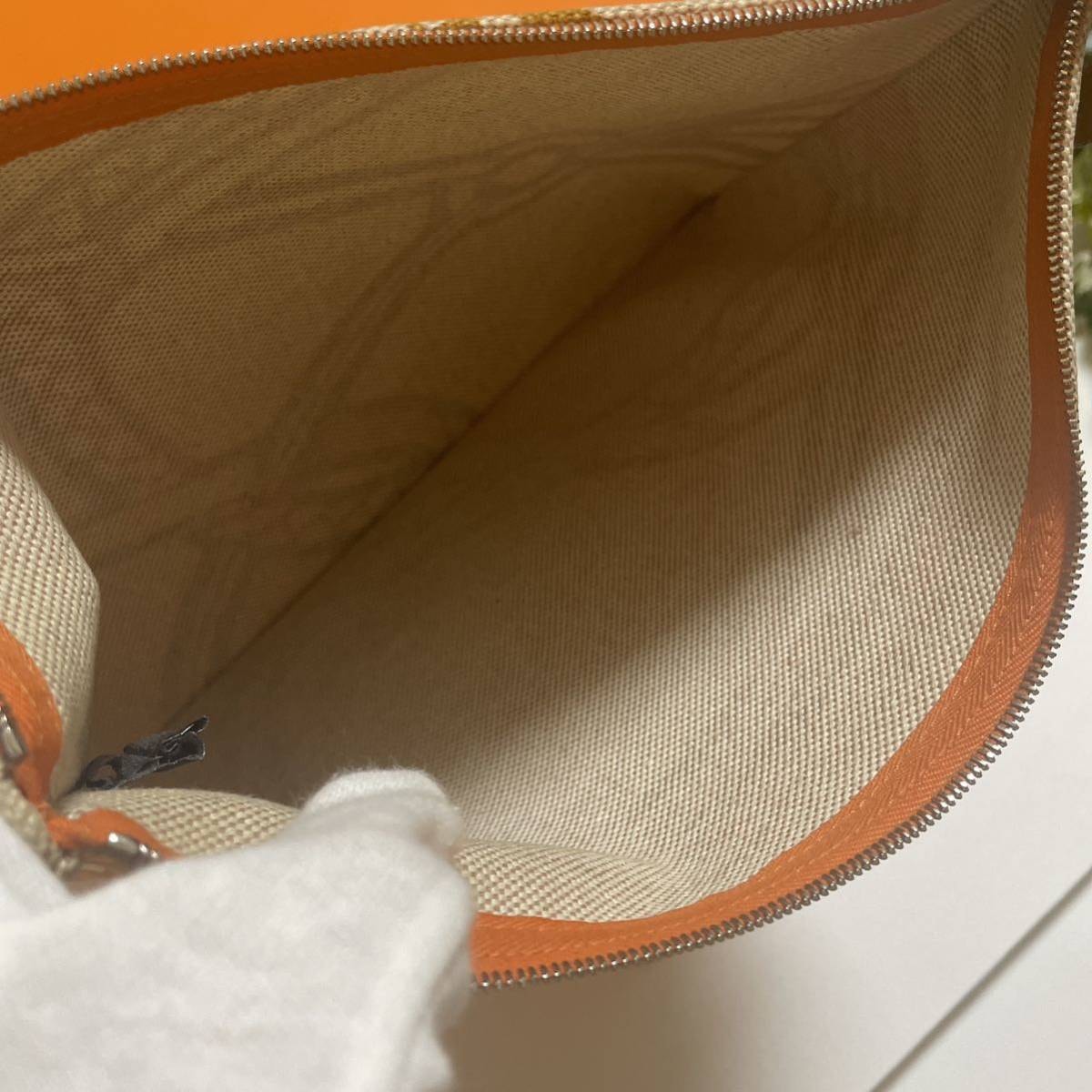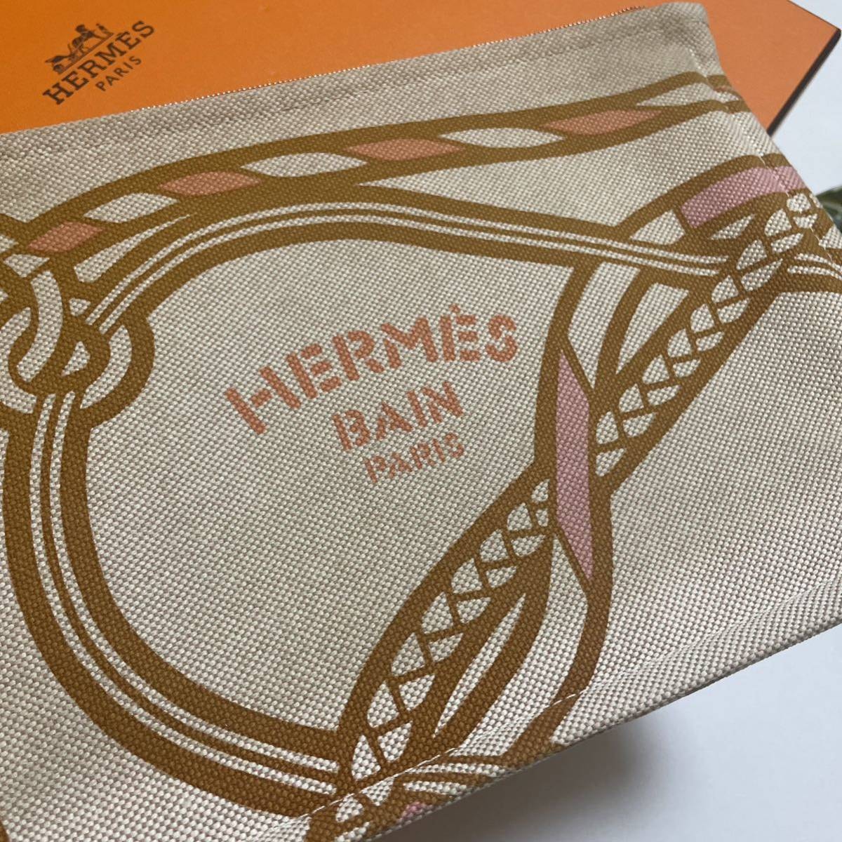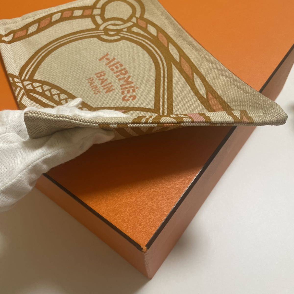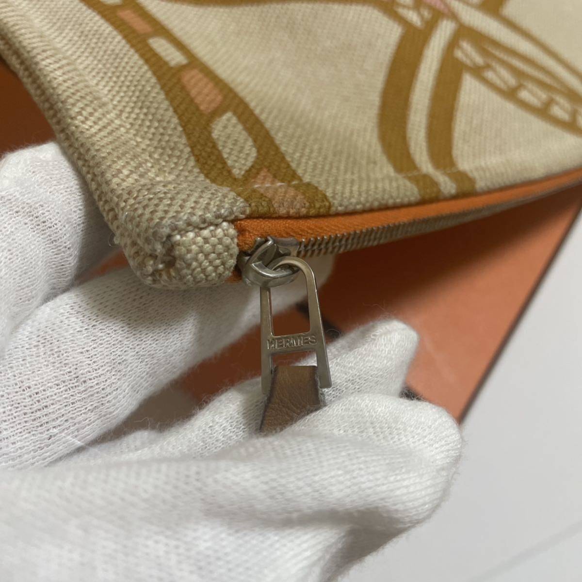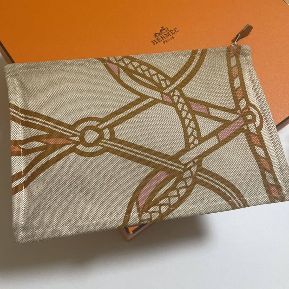 HERMES エルメス ヨッティングGM キャンバス トワルアッシュ フラットポーチ クラッチバッグ トレサージュ・マラン ロープ柄 コットン 茶色 ブラウン