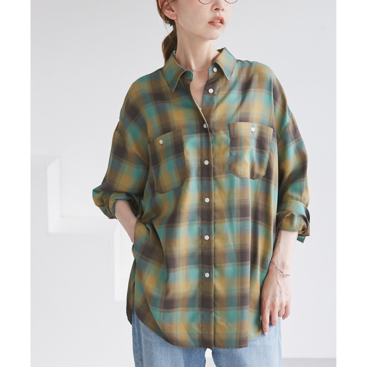 ・ゆとりのあるサイズ感のオンブレチェックシャツ。