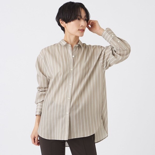 汎用性が高く、シャープな着こなしに欠かせない定番のベーシックシャツ。無地ライクに使える細めのピンストライプ柄をプリントしました。ニットベストとの重ね着がおすすめです。
