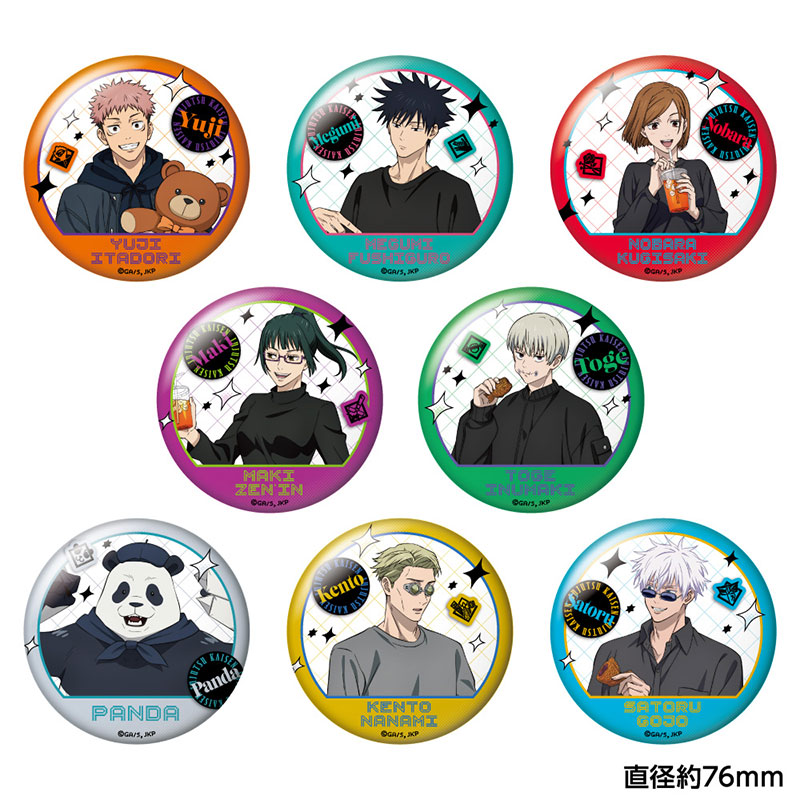 1BOX購入で全種揃います。 TVアニメ「呪術廻戦」より、新規描き下ろしイラストを使用したトレーディングおっきめ缶バッジが登場!