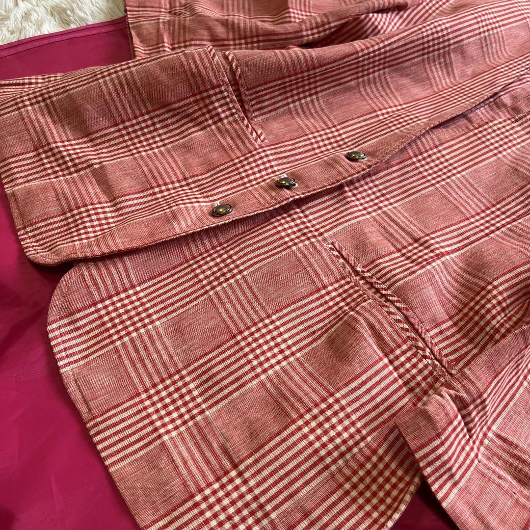大きめシルエットに赤のチェックがかわいい