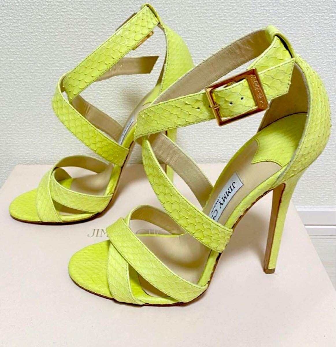 【JIMMY CHOO Elaphe Lemon Xenia ストラップサンダル - サイズ 37】